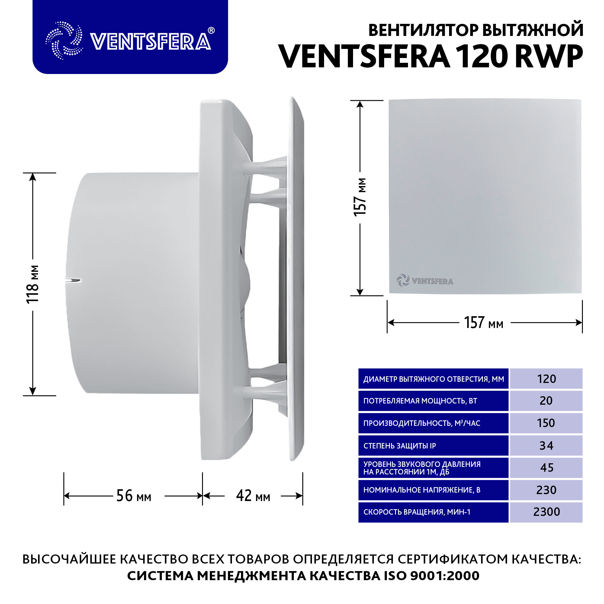 Вентилятор вытяжной D120/125 mm. С лицевой панелью, шнурковым выключателем, обратным клапаном, VENTSFERA 120 RWp пластиковый, для кухни и туалета интересное: