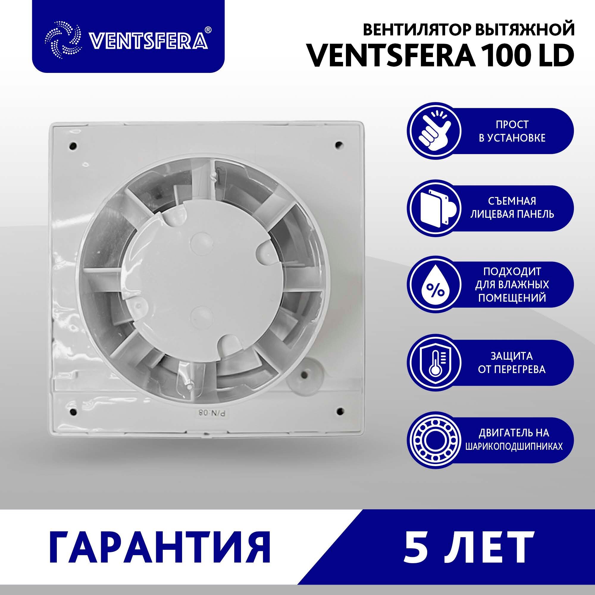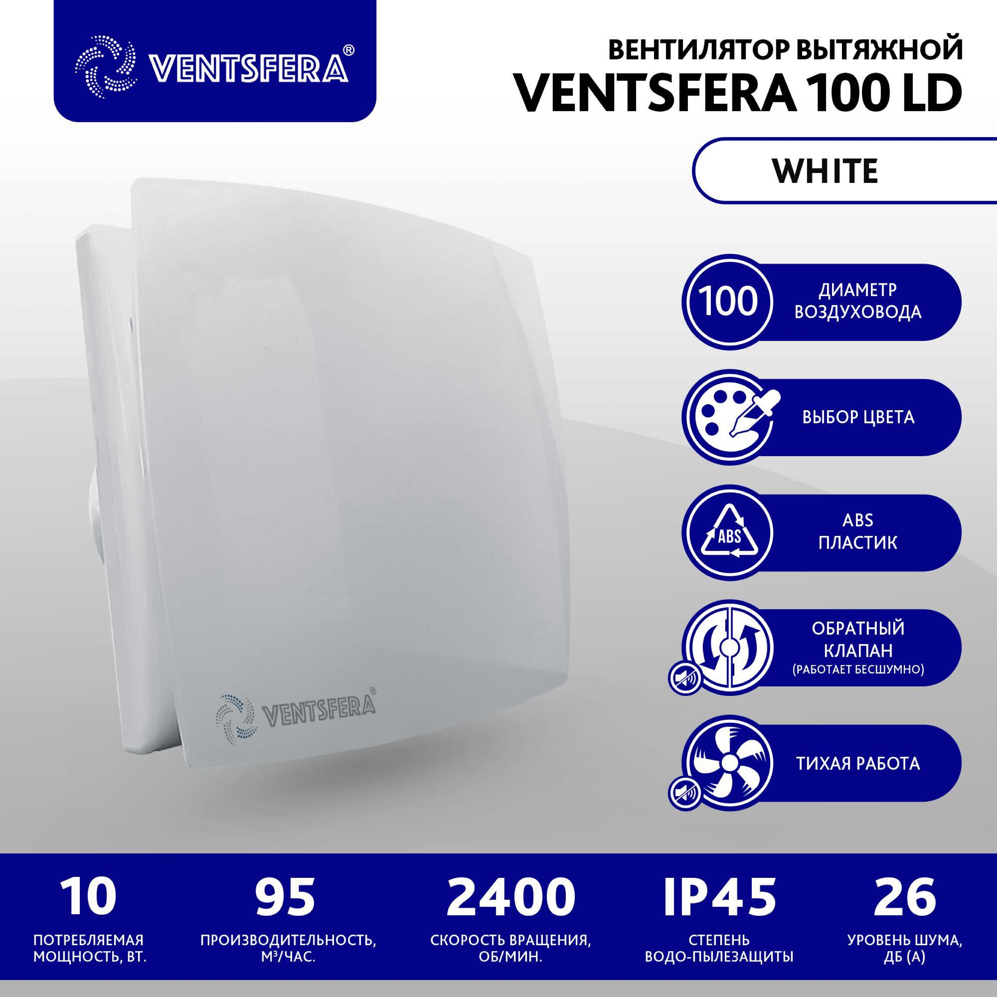 Вентилятор вытяжной бесшумный VENTSFERA 100 LD 100 мм, с обратным клапаном, световым индикатором, белый интересное: