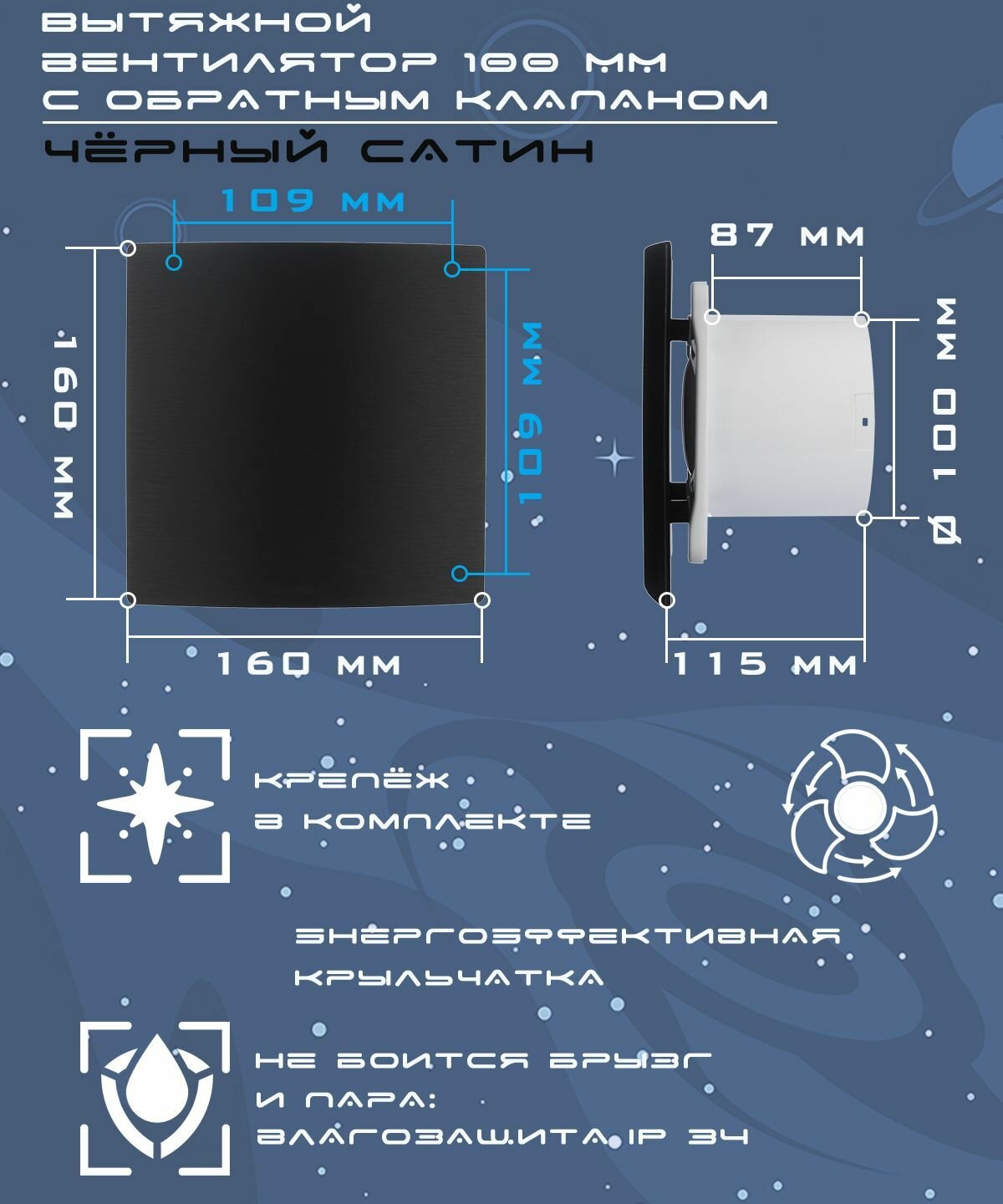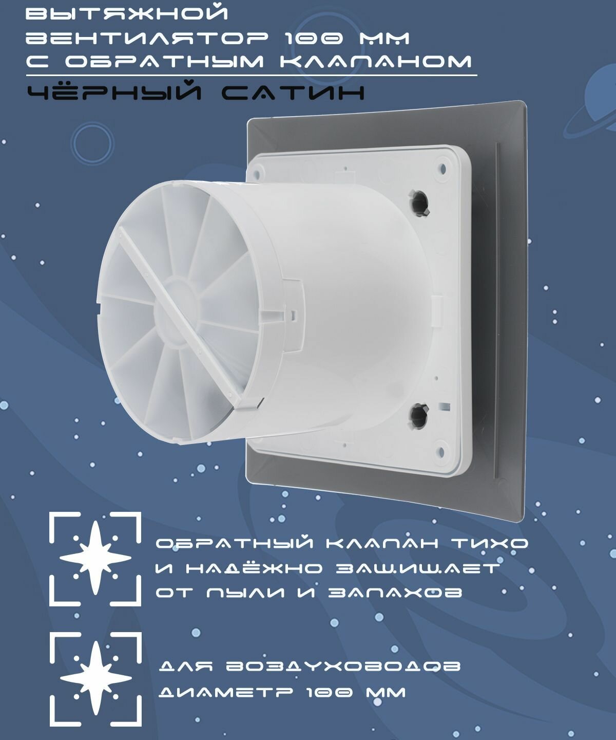 Вентилятор вытяжной декоративный космо диаметр 100 мм чёрный с обратным клапаном интересное: