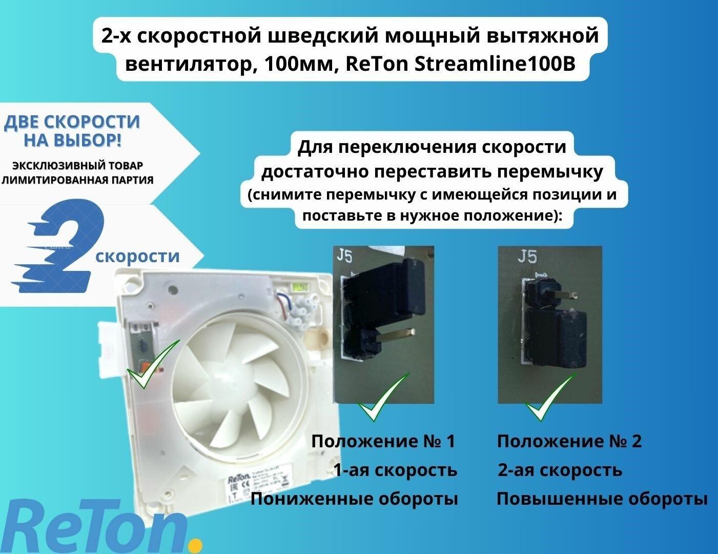2-х скоростной шведский вытяжной вентилятор, D100мм, с обратным клапаном Reton Streamline 100B , белый интересное: