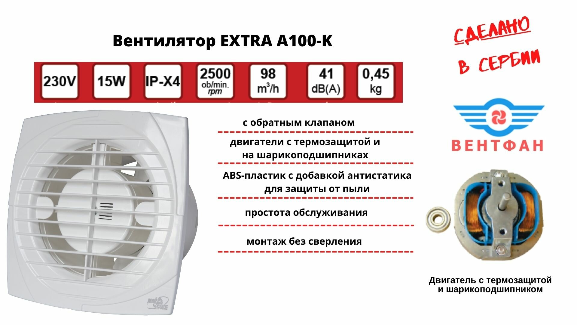 Вытяжной вентилятор D100мм с обратным клапаном и креплением без сверления A100-K, белый, Сербия интересное: