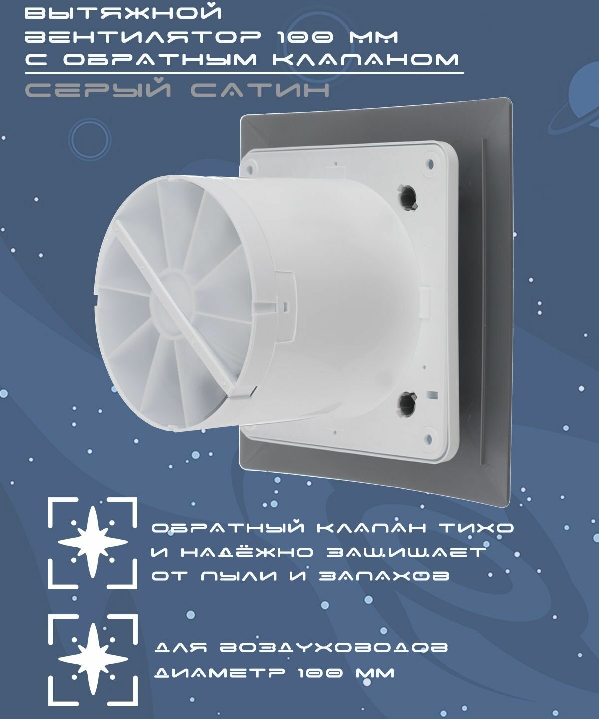 Вентилятор вытяжной декоративный космо диаметр 100 мм серебро с обратным клапаном интересное: