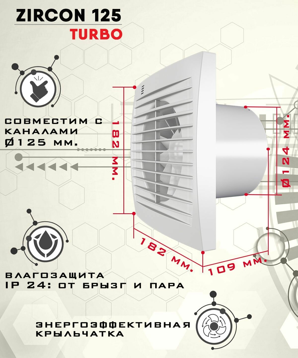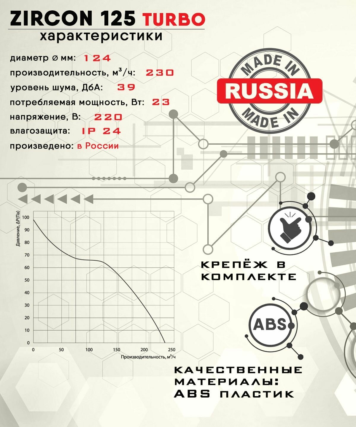 Zircon 125 TURBO вентилятор вытяжной повышенной мощности 230 куб.м/ч. в час диаметр 125 мм ZERNBERG интересное: