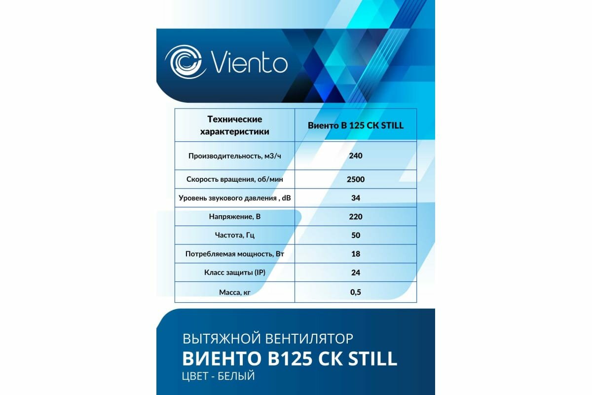 Viento Вентилятор осевой, вытяжной с обратным клапаном, малошумный, виенто В125СК STILL (240 м3), волна интересное: