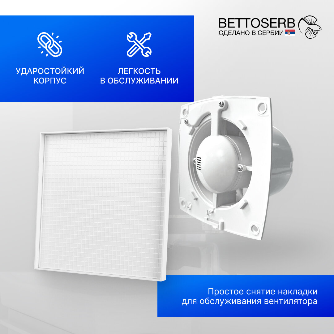 СохранитьВентилятор вытяжной бесшумный для ванной/туалета/кухни BETTOSERB с обратным клапаном, c накладкой белая под плитку интересное: