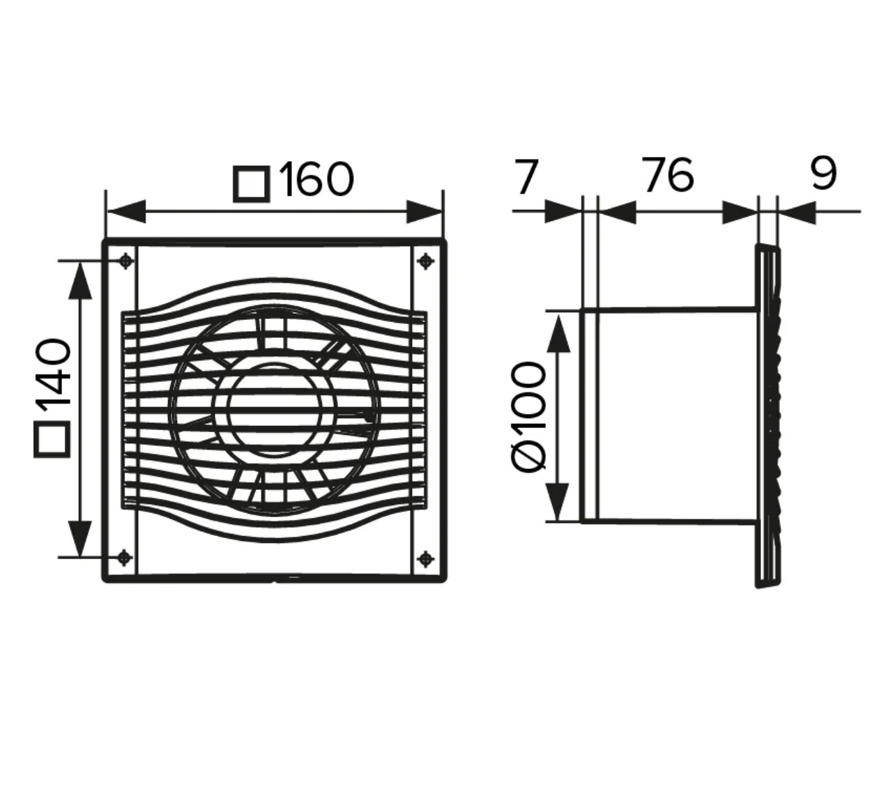 Вентилятор вытяжной настен, Эра, d100 мм, 7.8 Вт, 90 м3/ч, обр.клап, Slim 4C