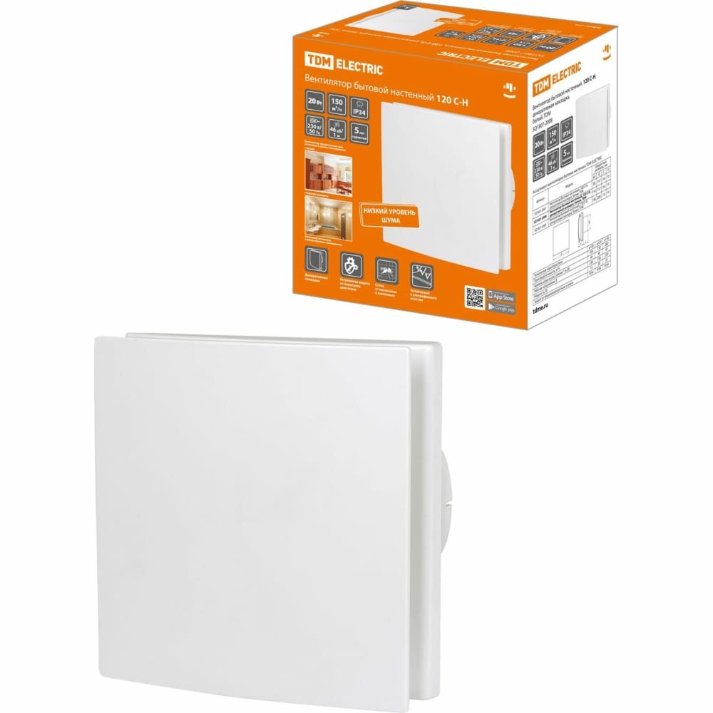Вентилятор бытовой настенный, 120 С-Н, декоративная накладка, белый, TDM интересное: