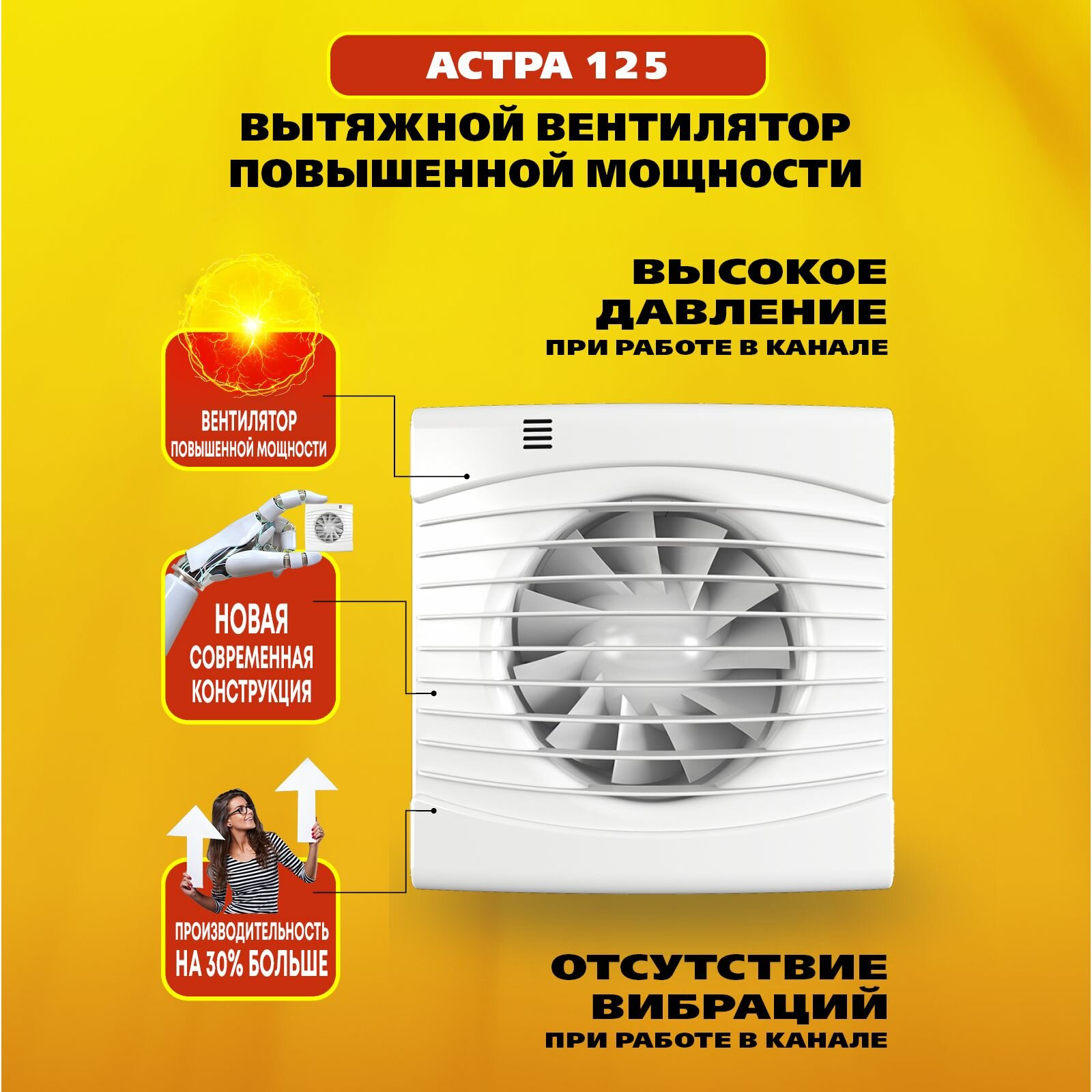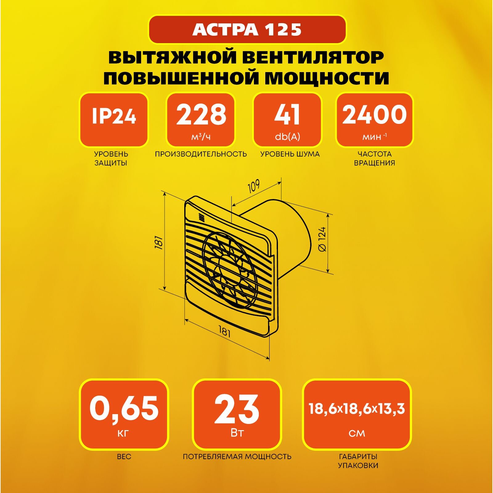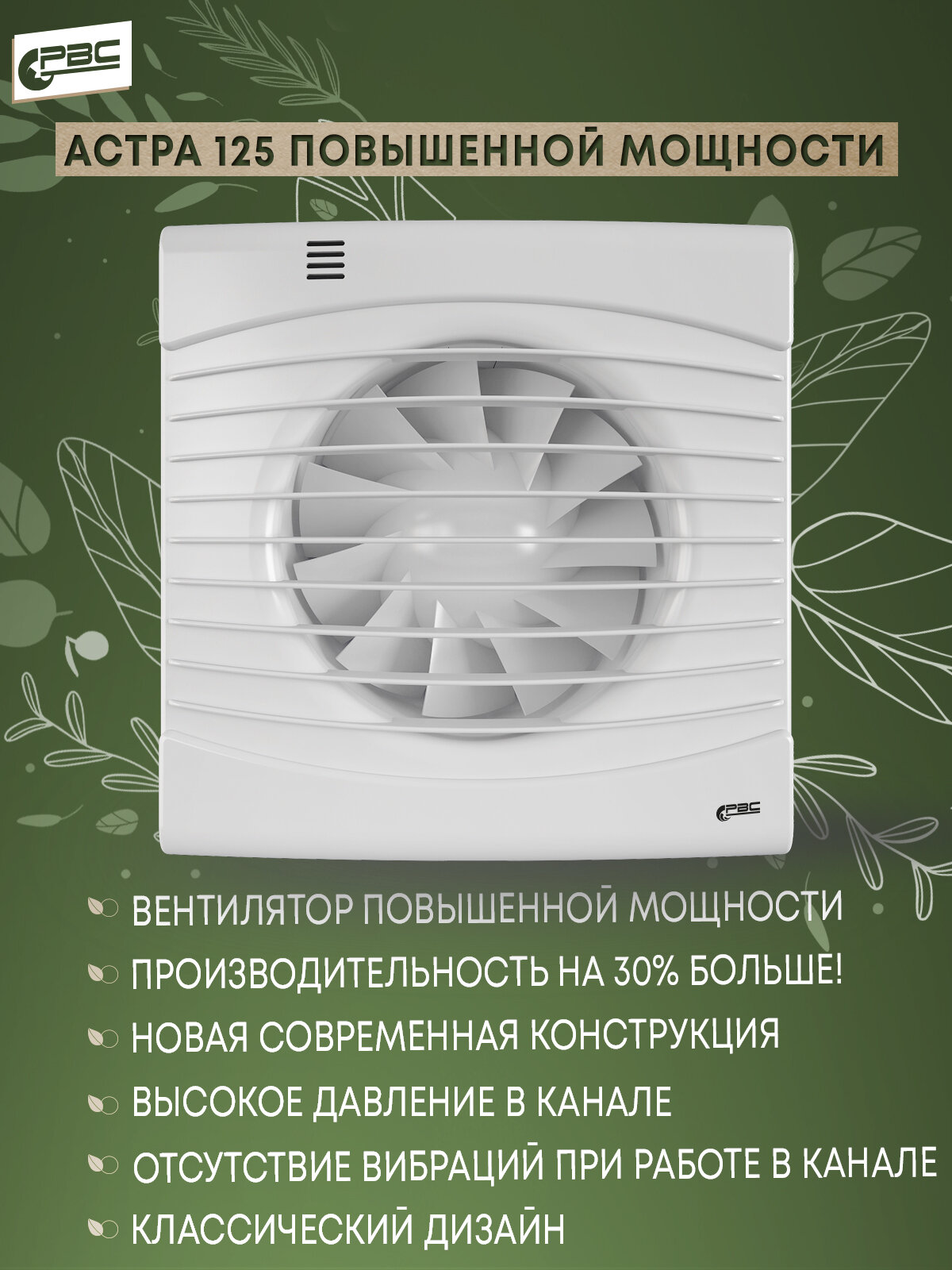 Вентилятор вытяжной Рвс Астра 125 повышенной мощности, 23 Вт, 41 дБ, 228 м3/ч