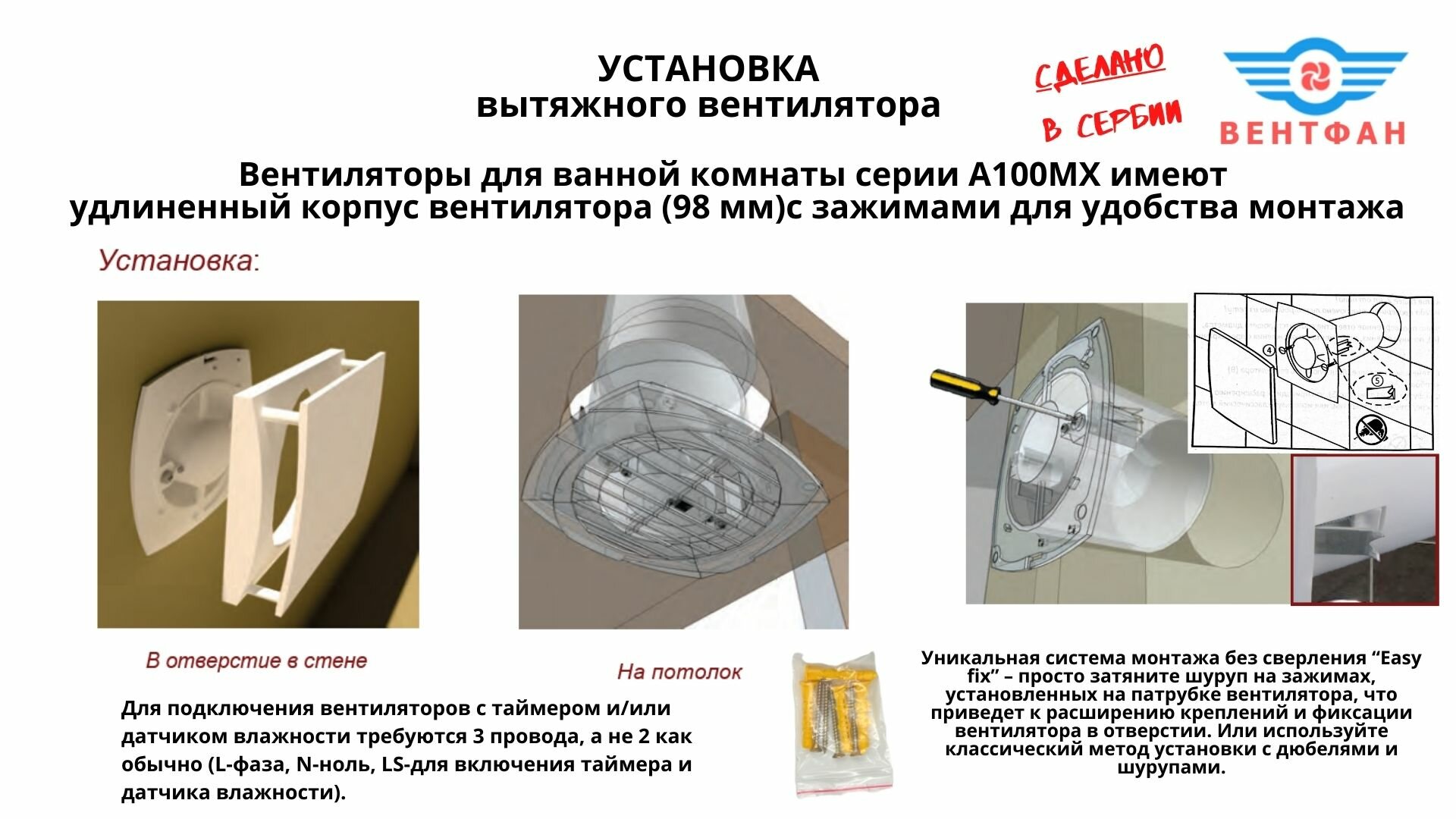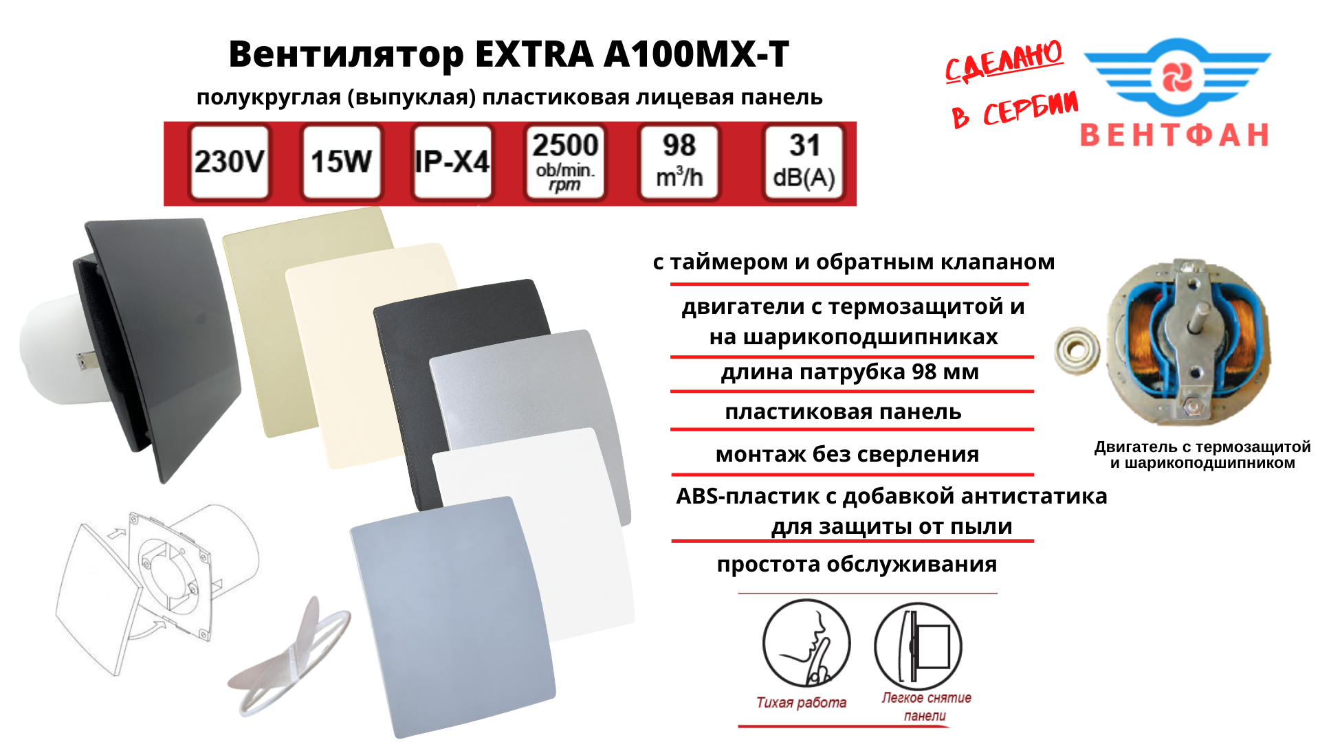 Вентилятор с таймером, D100мм, с пластиковой серой панелью, с обратным клапаном и креплением без сверления A100МX-T, Сербия интересное: