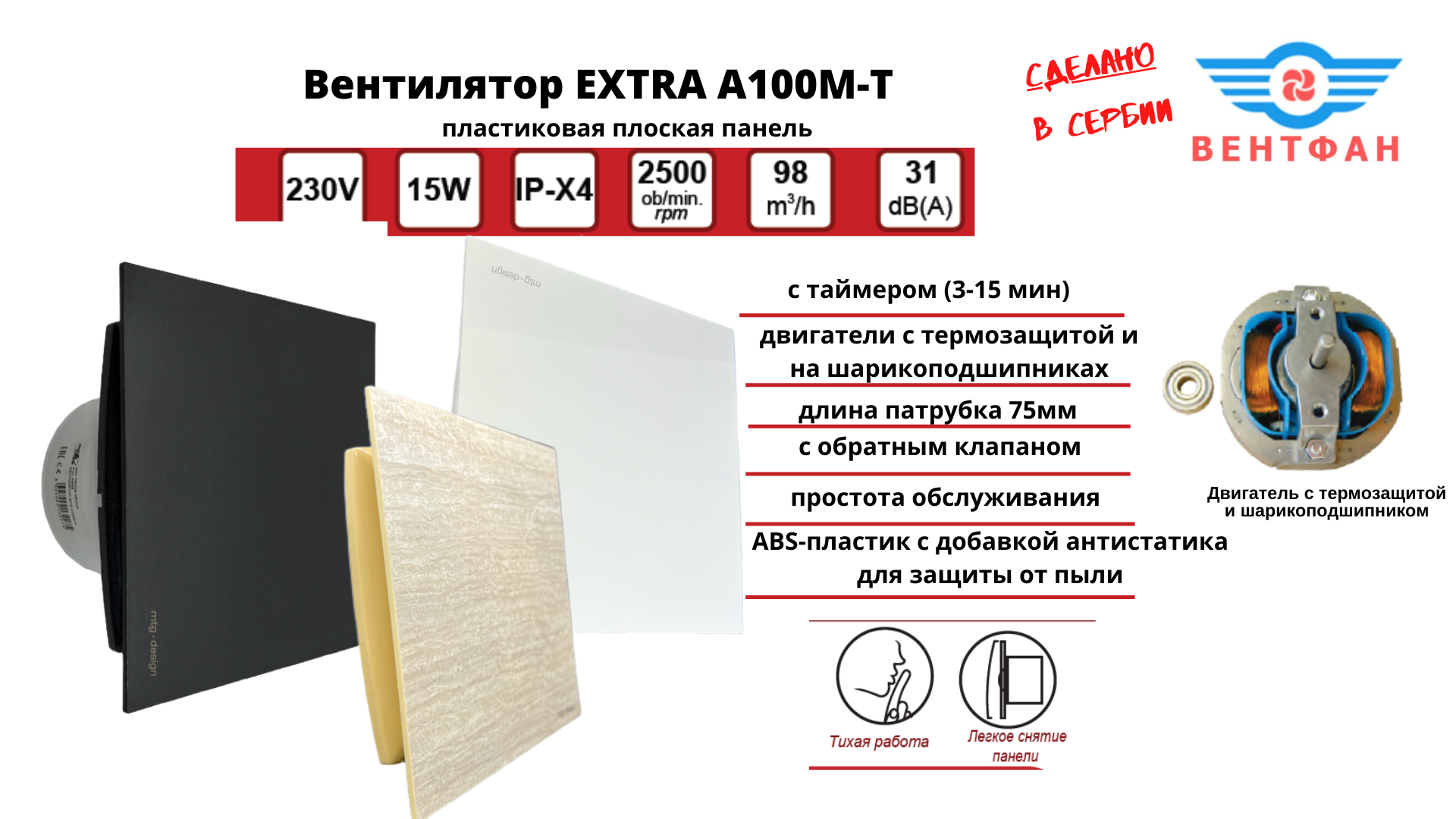 Вентилятор с таймером, D100мм, с пластиковой плоской панелью (цвет бежевый камень) и с обратным клапаном EXTRA100М-T+PL-PVC STONE, Сербия интересное: