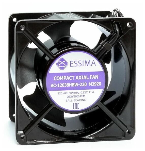 Вентилятор AC-12038HBW-220 компактный, 220В, 20 Вт, 153 м3/час, 2600 об/мин, 42 Дб, 0.13 А, размер 120х120х38мм