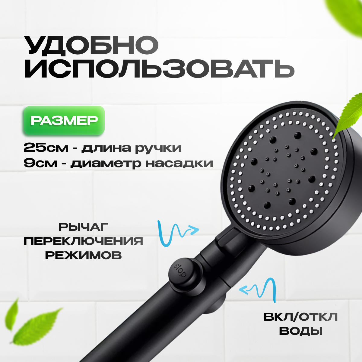 СохранитьЛейка для душа 5 режимов, турболейка водосберегающая, черная, "VoLoMarket" интересное: