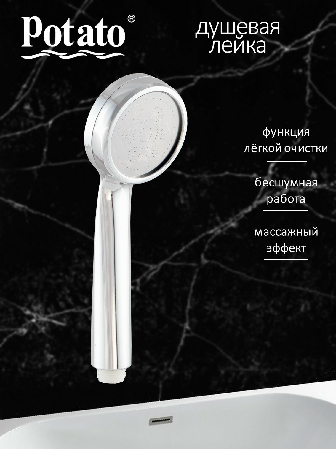 Лейка для душа Potato P080 с мембраной, 1 режим струи, пластик, хром интересное: