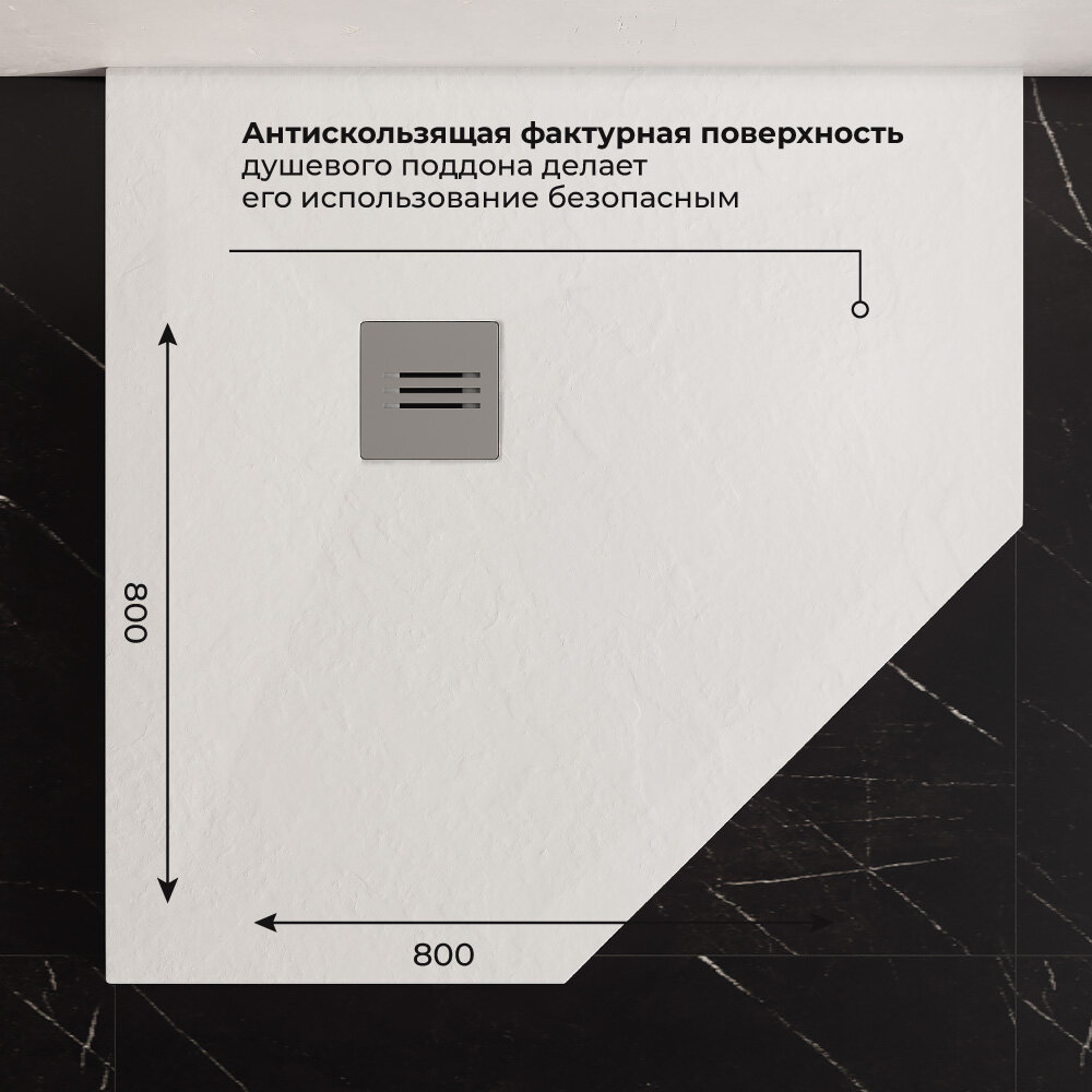 Премиальный поддон для душа INRAIN из искусственного камня трапеция Т-80х80x3см Белый с решеткой для сифона