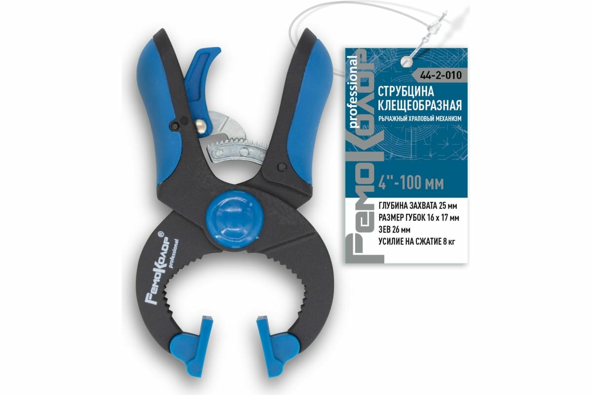 Струбцина клещеобразная с храповым механизмом, 4"/100, зев 26мм, РемоКолор PRO