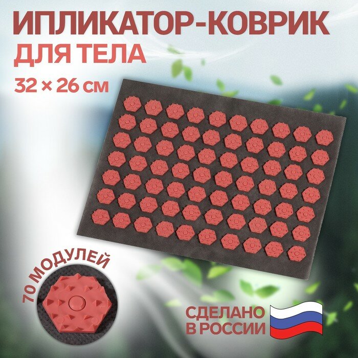 Ипликатор-коврик, основа текстиль, 70 модулей, 32 × 26 см, цвет тёмно-серый/красный интересное: