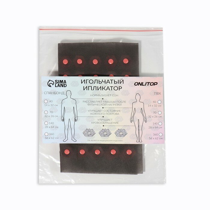 Onlitop Ипликатор-коврик, основа спанбонд, 160 модулей, 28 × 64 см, цвет тёмно-серый/розовый