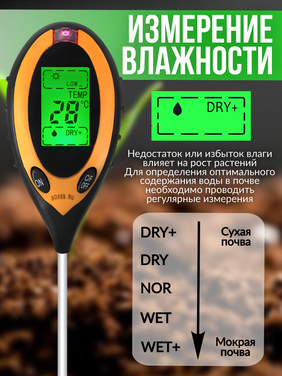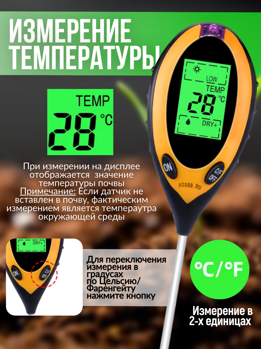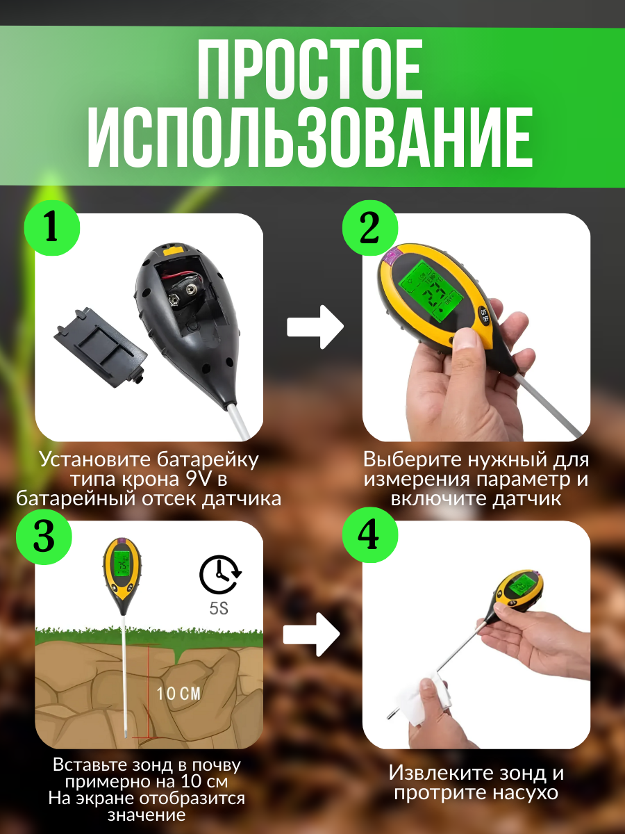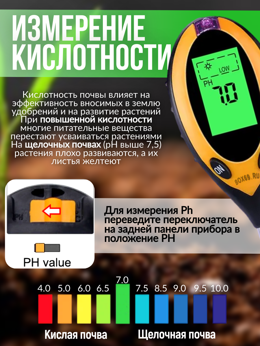 Ниже Вы можете прочитать отзывы на Тестер pH измеритель кислотности влажности температуры почвы, ознакомится с подробными характеристиками, посмотреть интересные обзоры и фотографии на Тестер pH измеритель кислотности влажности температуры почвы.
