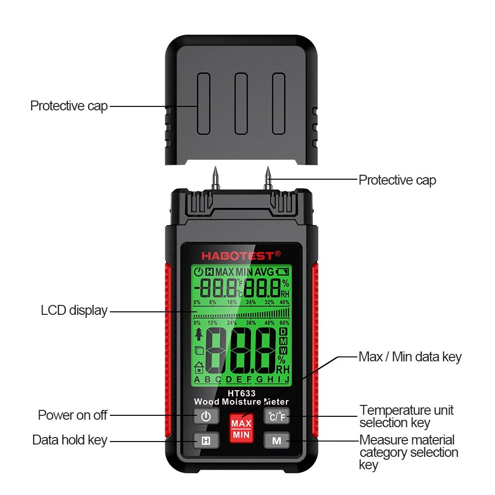 Деревянный гигрометр HABOTEST HT633, игольчатый цифровой детектор влажности, температура и влажность с подсветкой дисплея интересное: