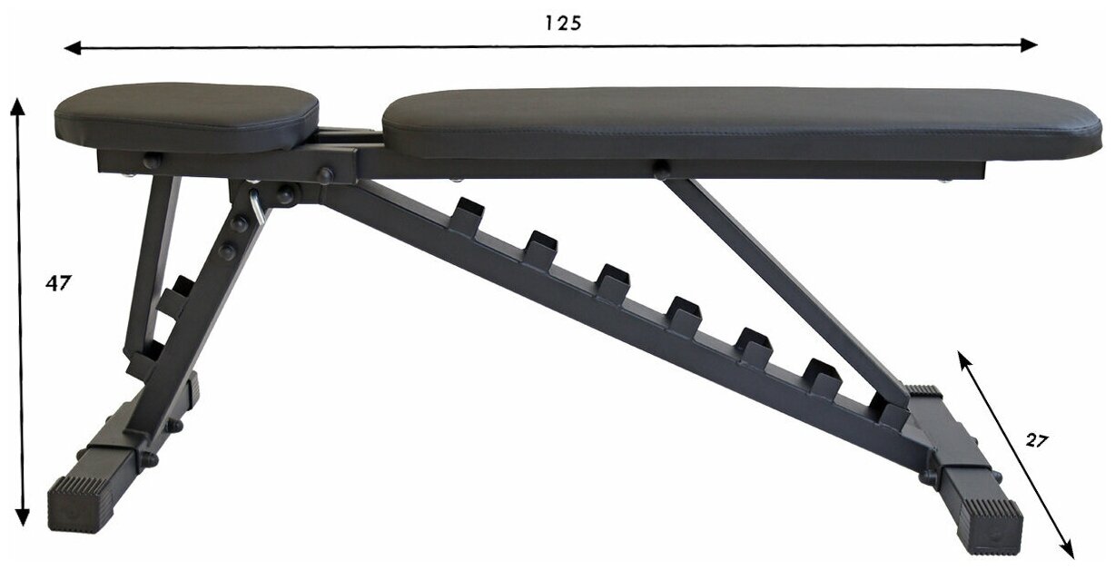 Скамья спортивная RP для жима (свыше 350кг) черный каркас с черной обивкой