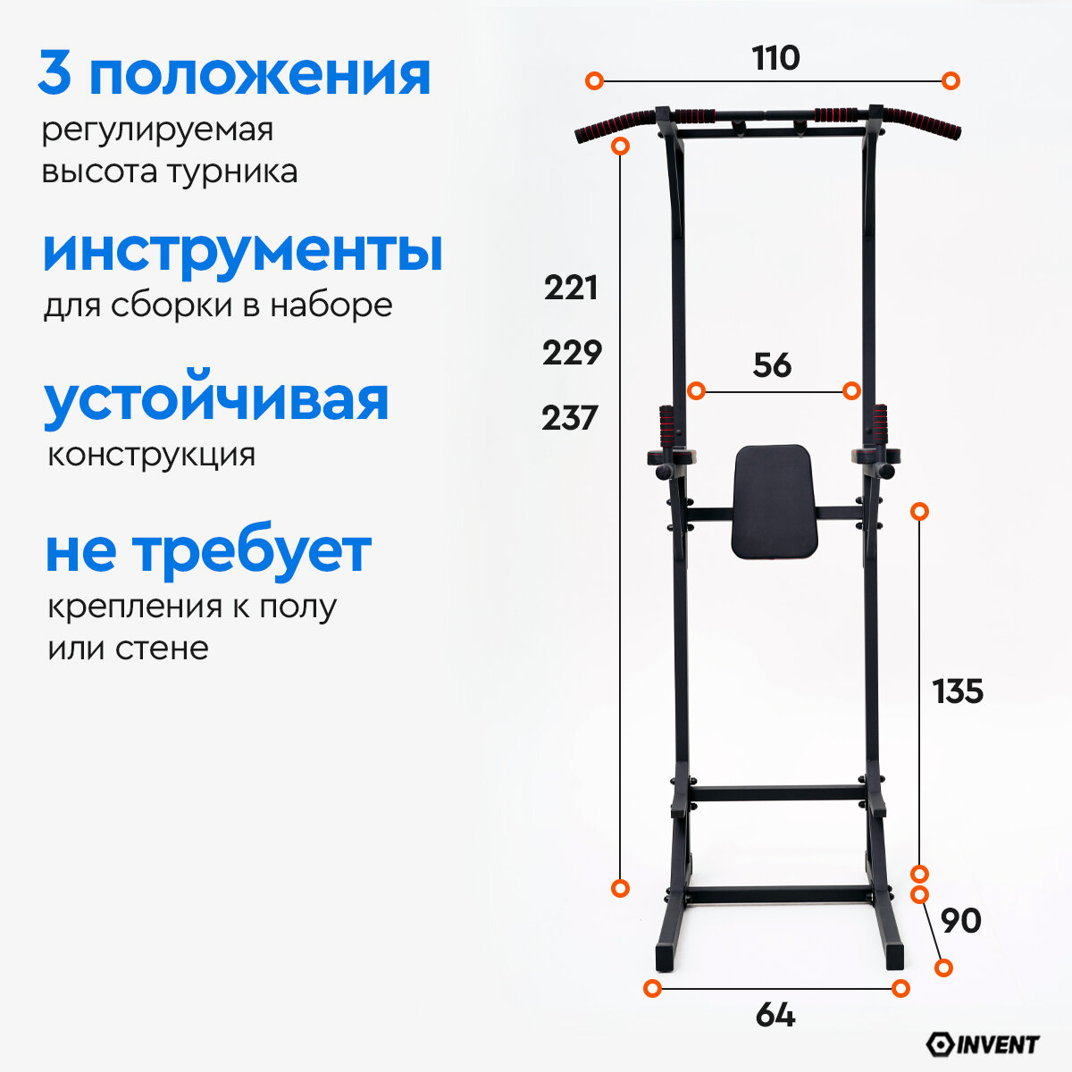 Напольный турник + брусья + пресс INVENT TN-02 интересное: