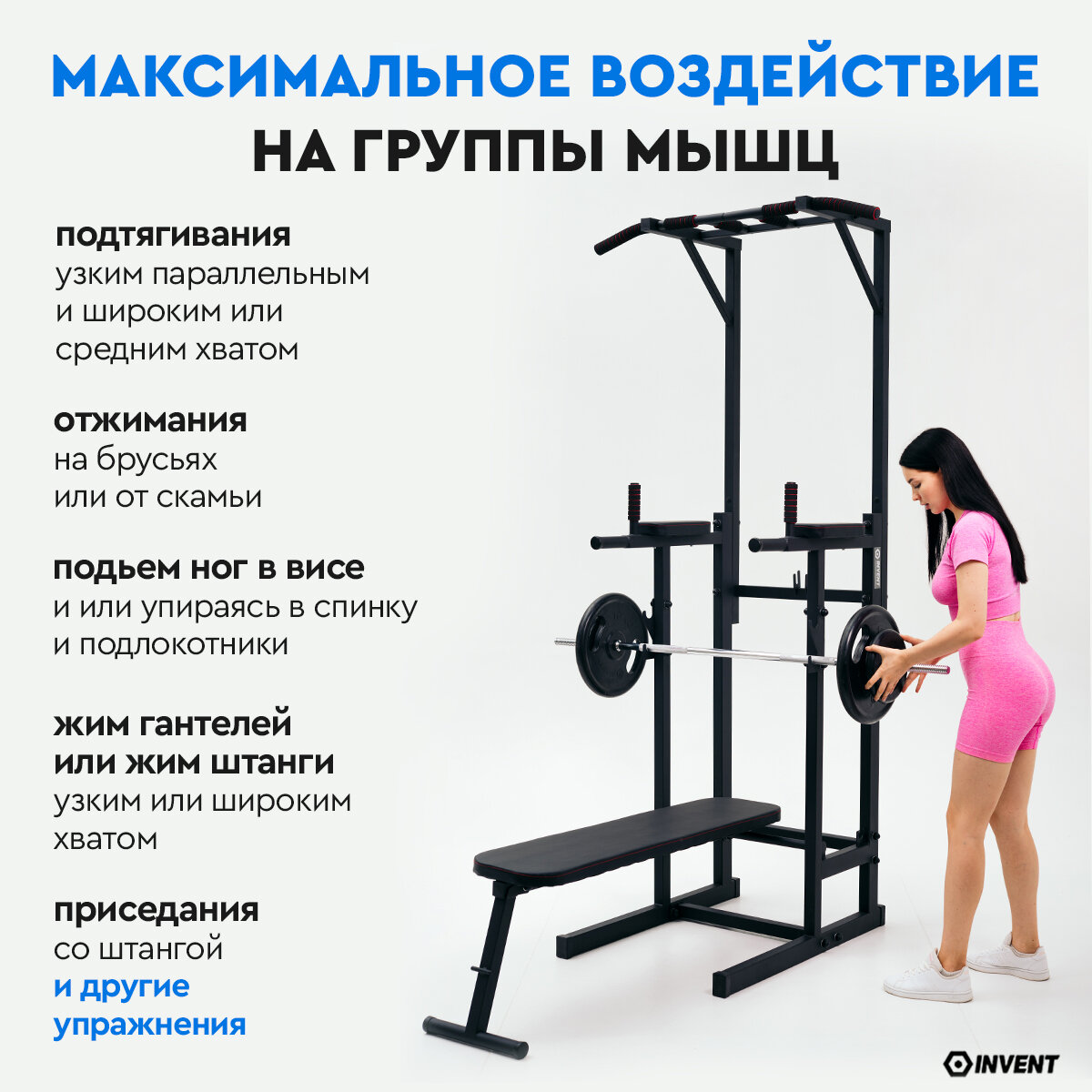 Напольный турник со скамьей + брусья + пресс INVENT TN-03 интересное: