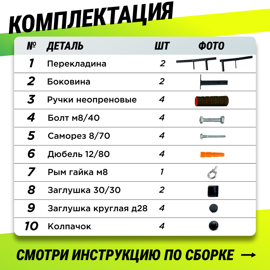 | Дополнительные функции | крепление для боксерской груши / противоскользящие ручки / работа с прессом / разборный / разные положения для хвата |