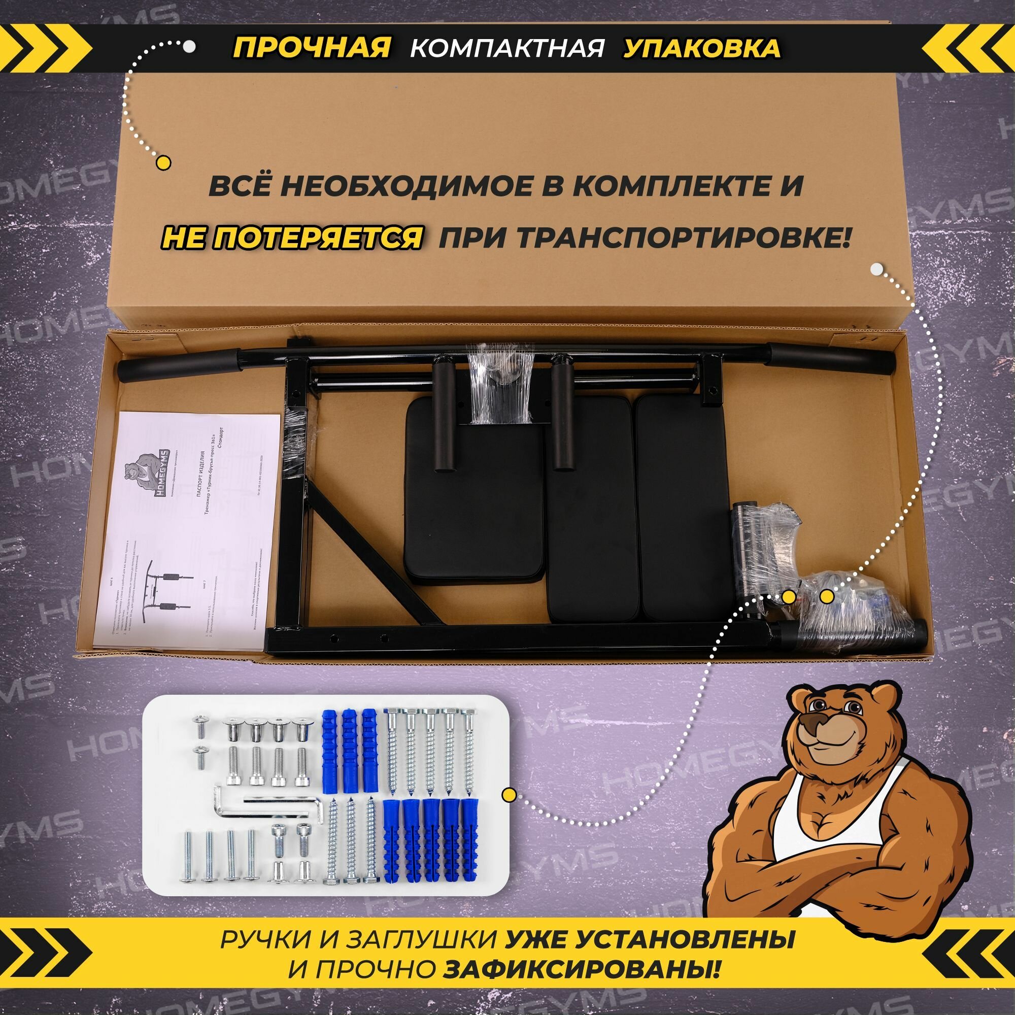 Турник брусья пресс 3 в 1 настенный HOMEGYMS, усиленный, разборный, черный интересное: