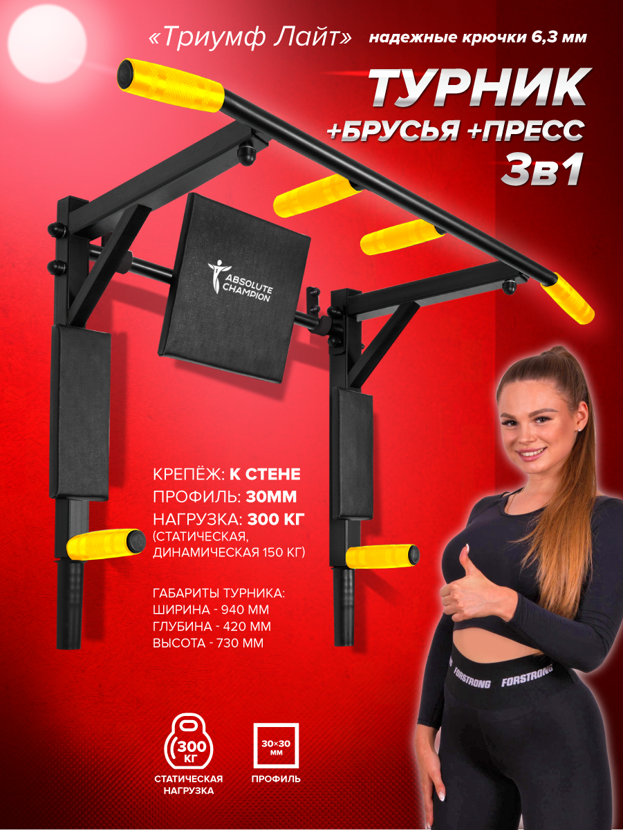 | Тип | 3в1: турник / брусья / пресс |