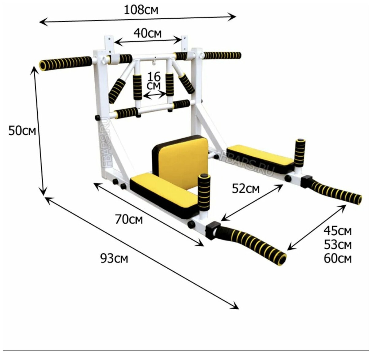 Турник 3в1 Мультихват + Упоры для отжиманий (цвет: бело-желтый)