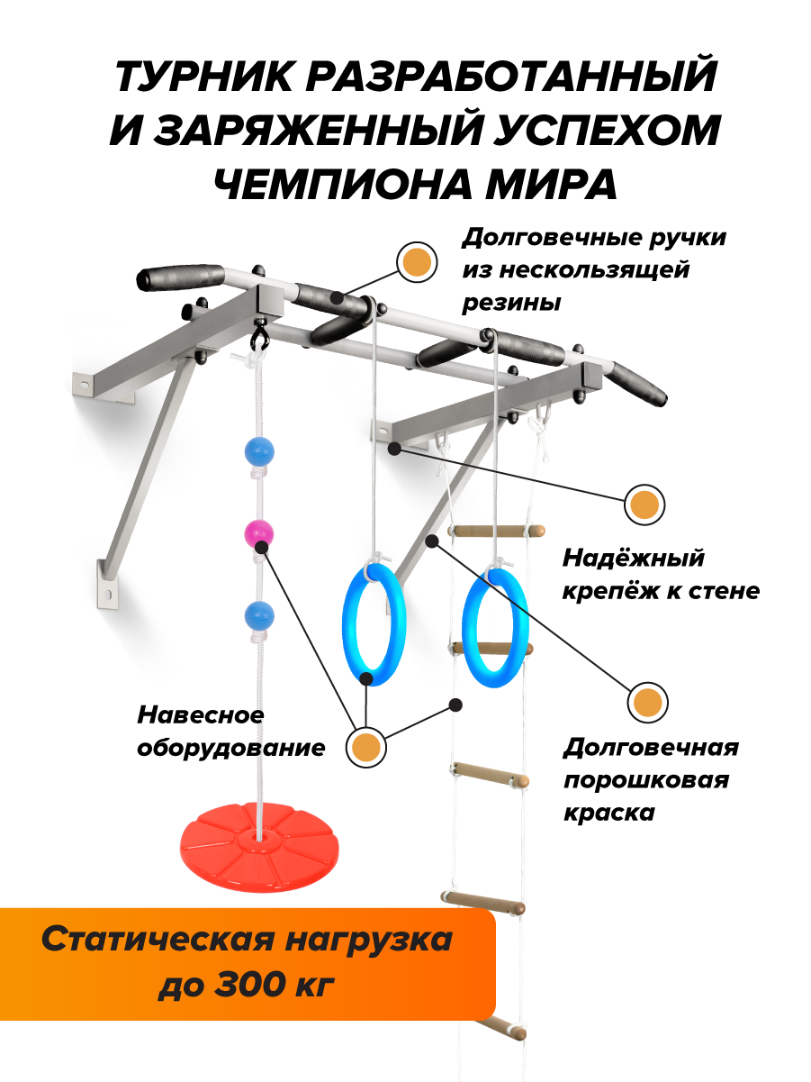Турник Оптимист (тарзанка, лестница, кольца) белый с черными ручками интересное: