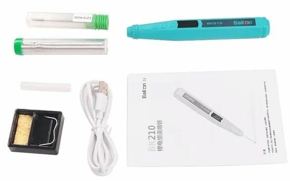 | Комплектация | Паяльник с аккумулятором Подставка под паяльник с губкой Припой USB кабель Наконечник Защитная силиконовая трубка для наконечника |