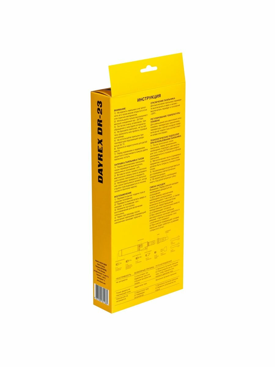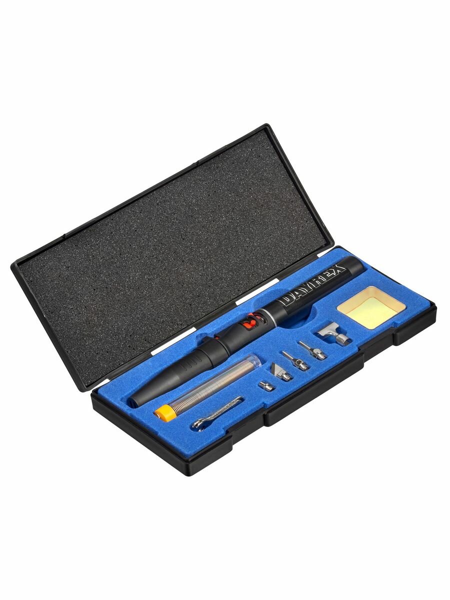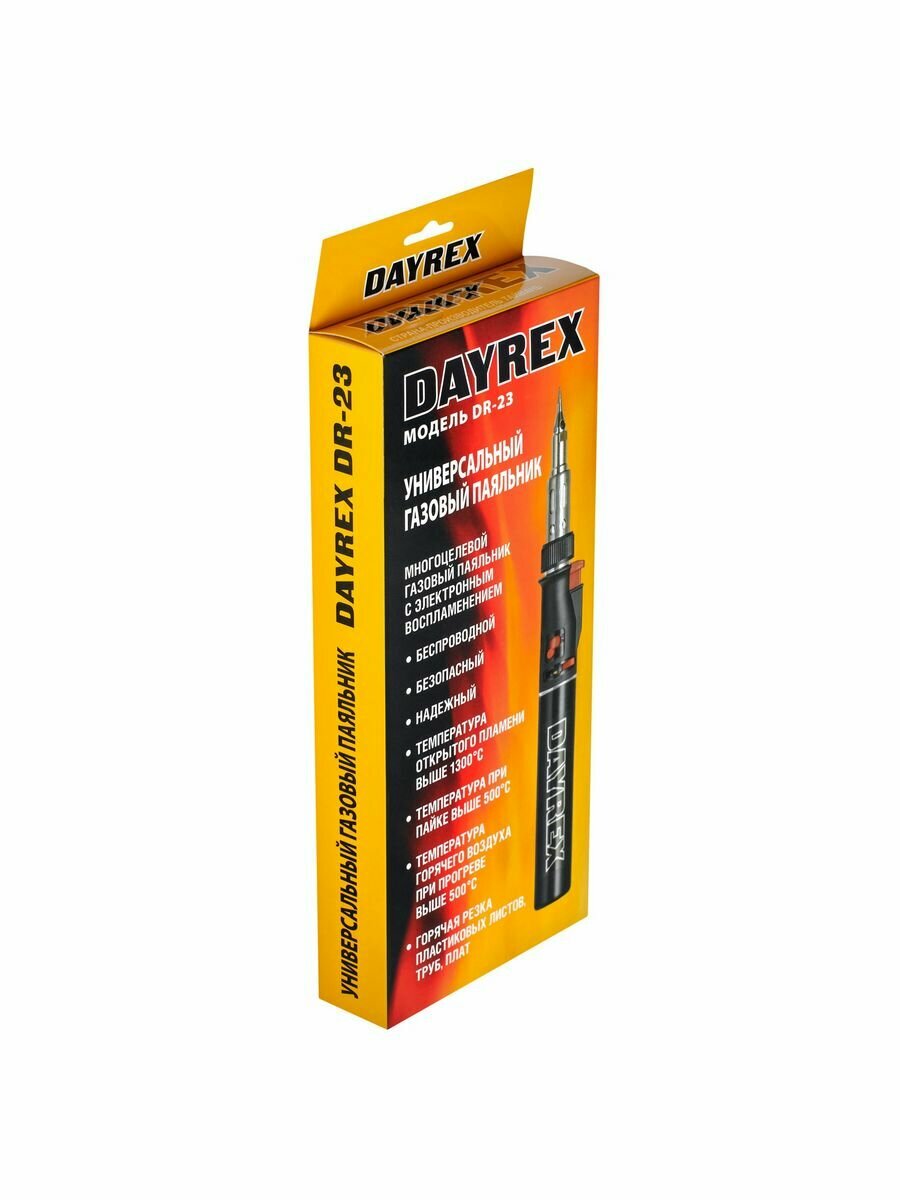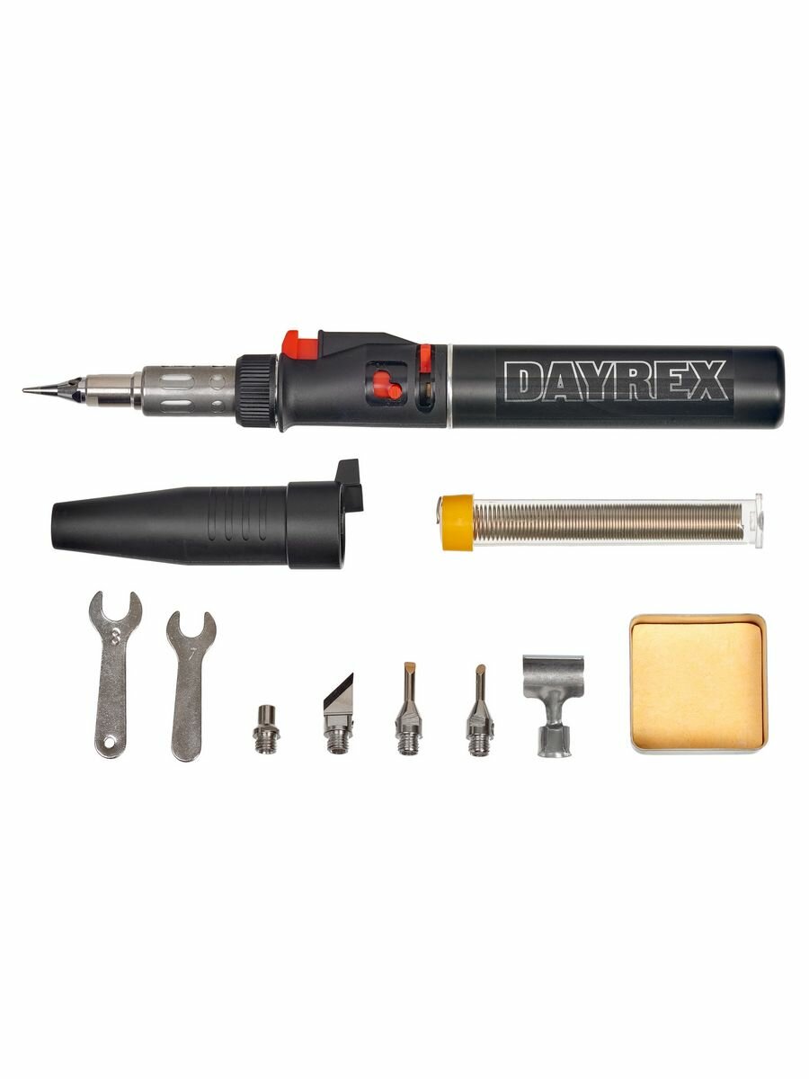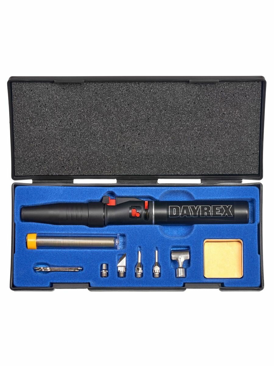 | Дополнительная информация | Газовый паяльник DAYREX 23 обладает большим функционалом благодаря расширенной комплектации и подойдет для широкого спектра работ, начиная от резки материала и заканчивая пайкой. |