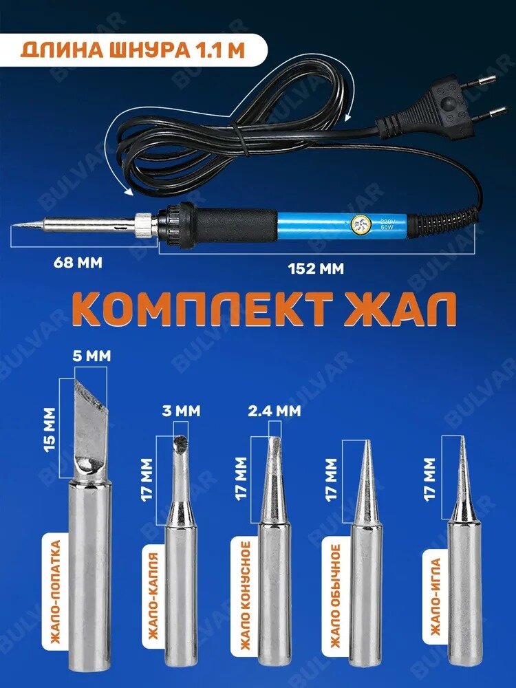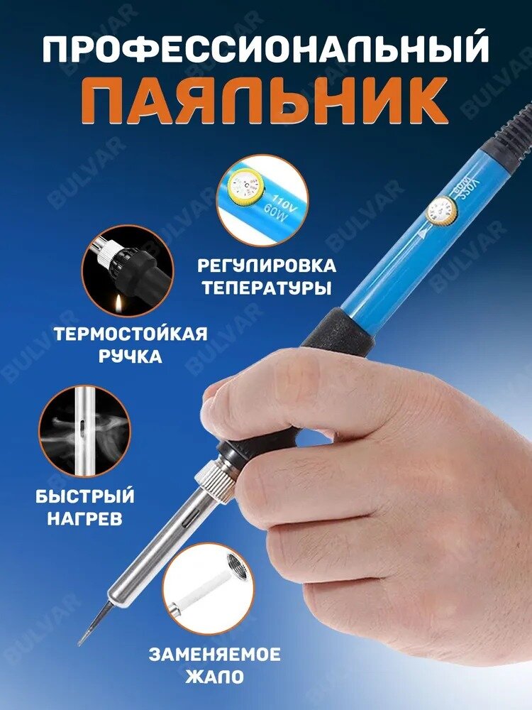Паяльник 60 Вт 220 В с регулировкой температуры, набором жал и аксессуарами 11 шт. интересное: