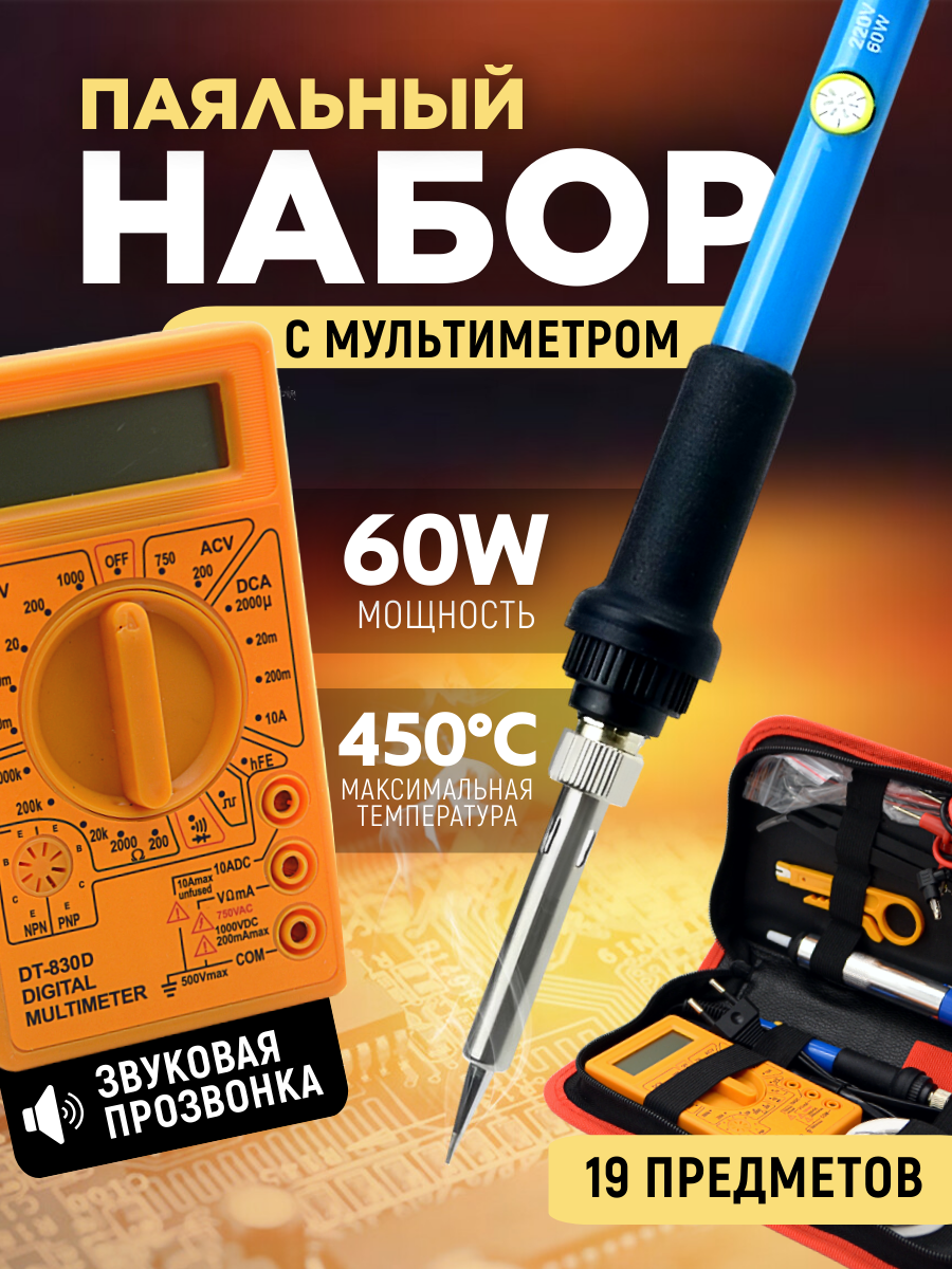Паяльник 60 Вт набор для пайки 19 предметов интересное: