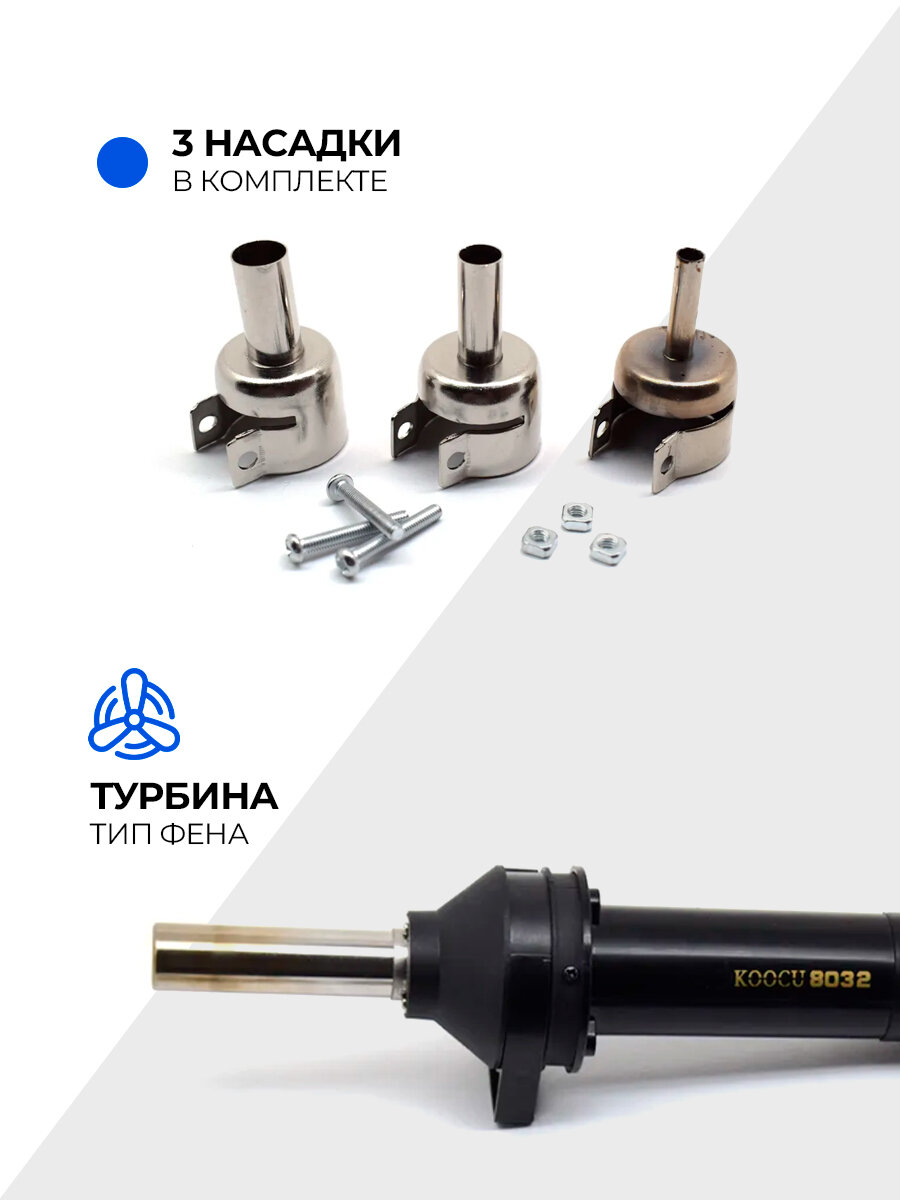 Фен KOOCU 8032 паяльный 100-480С 420W интересное: