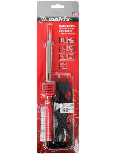 MATRIX Паяльник, пластиковая рукоятка, медный наконечник с долговечным защитным покрытием, 220 В, 60 W Matrix, ( 913006 ) интересное: