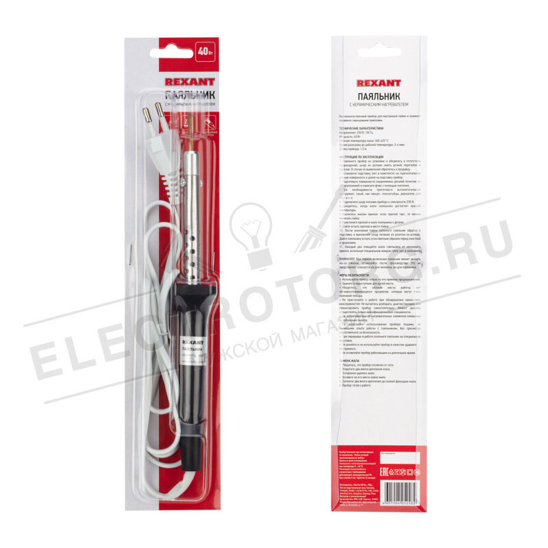 Паяльник с керам. нагревателем, серия ЭПСН, 40Вт, 230В, блистер REXANT, цена за 1 шт интересное: