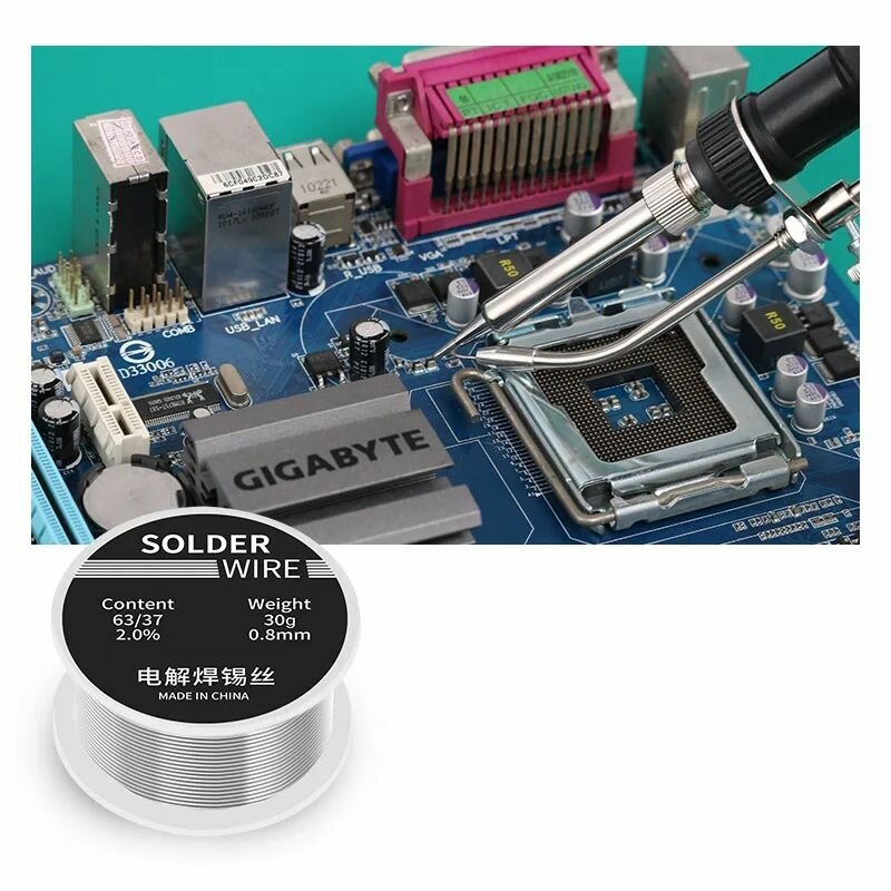 | Комплектация | 1) Подставка для паяльника 2) Паяльник с подачей припоя (0.5-1.2мм): 60Вт (до 480 ℃) / 220В / Наконечники паяльника: 900M / Длина провода: 1.2м 3) Отсос для пайки 4) Пинцет 5) Припой катушка 0.8мм/30г |