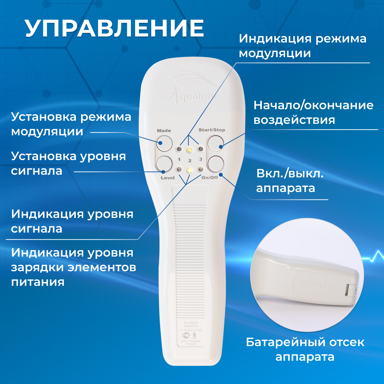 | Подробная комплектация | Аппарат «Акватон-05»-1 шт. Паспорт-1 шт. Инструкция по применению -1 шт. Элементы питания AA R6 1,5V-2 шт. Упаковка-1 шт. |