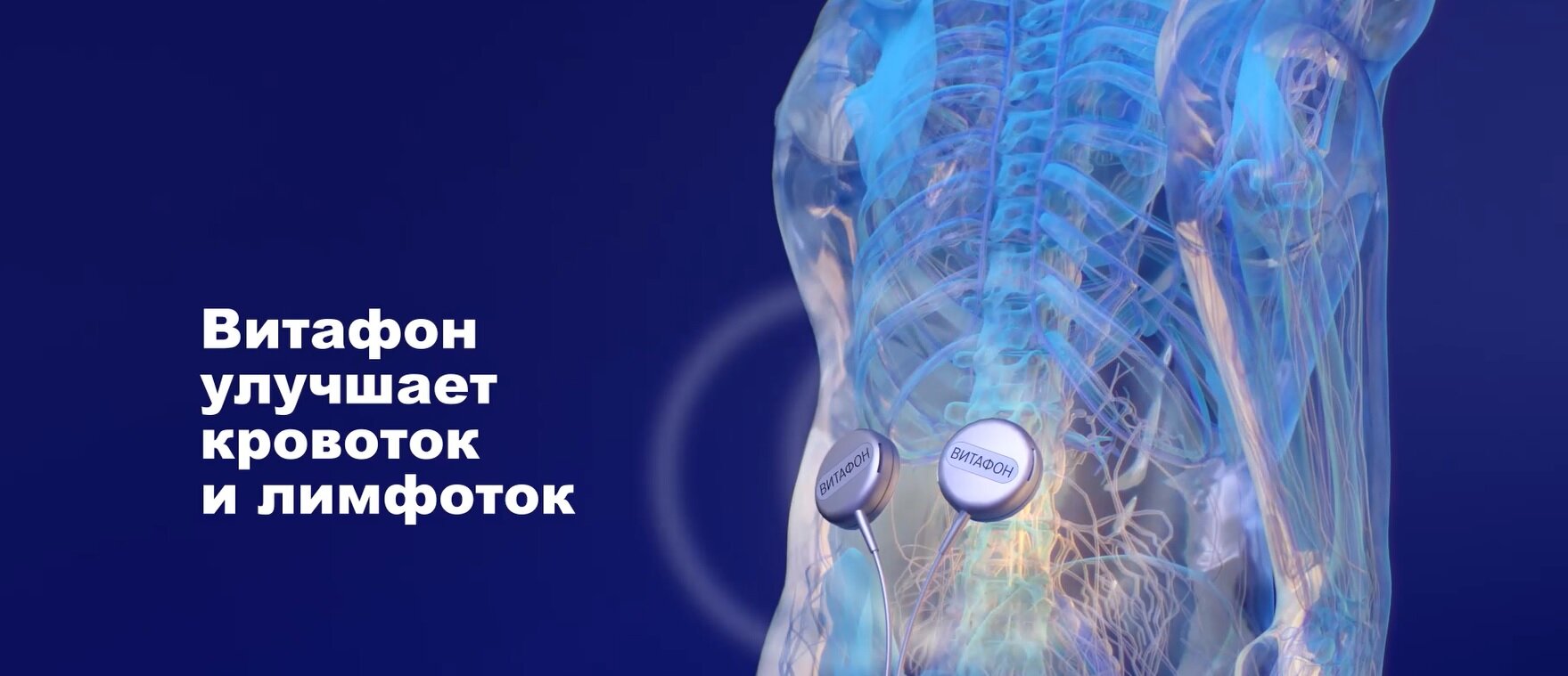 | Способ применения | Преобразователь, с помощью которого передаются микровибрации при контакте с телом, называется виброфоном. Виброфоны прикладывают мембранами к поверхности тела через марлевую, бумажную или хлопчатобумажную салфетку. Виброфоны крепят с помощью эластичного бинта, специальных фиксирующих манжет для аппаратов серии «Витафон», удерживают руками или прижимают собственным весом (например, лежа на спине). |
