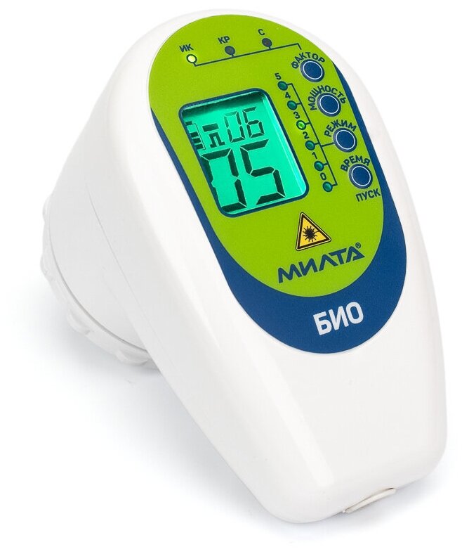 | Показания к применению | Аппарат МИЛТА-Ф-5 "БИО" предназначен для лечения в домашних условиях и медицинских учреждениях. В состав физиотерапевтических факторов МИЛТА БИО входят - постоянное магнитное поле; инфракрасное импульсное лазерное излучение; световое излучение красного, синего, инфракрасного спектрального диапазона. В комплект входит методическое пособие по применению лазерной терапии при сердечно-сосудистых заболеваниях, болезней органов дыхания, дерматологии, инфекционных заболеваниях, невропатологии, заболеваниях органов пищеварения, эндокринологии и др. |