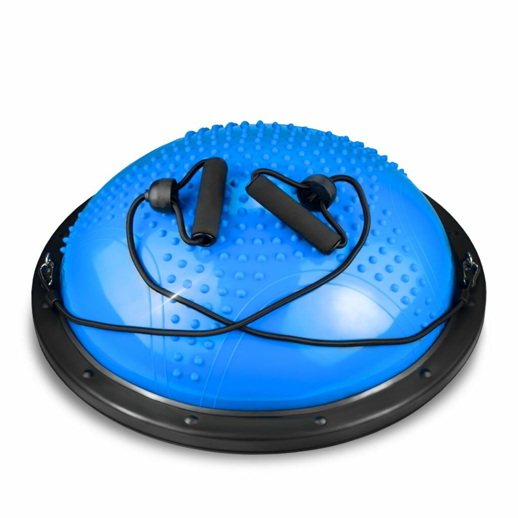 Балансировочная платформа (полусфера) с эспандерами, массажная подушка для занятий, 60 см.