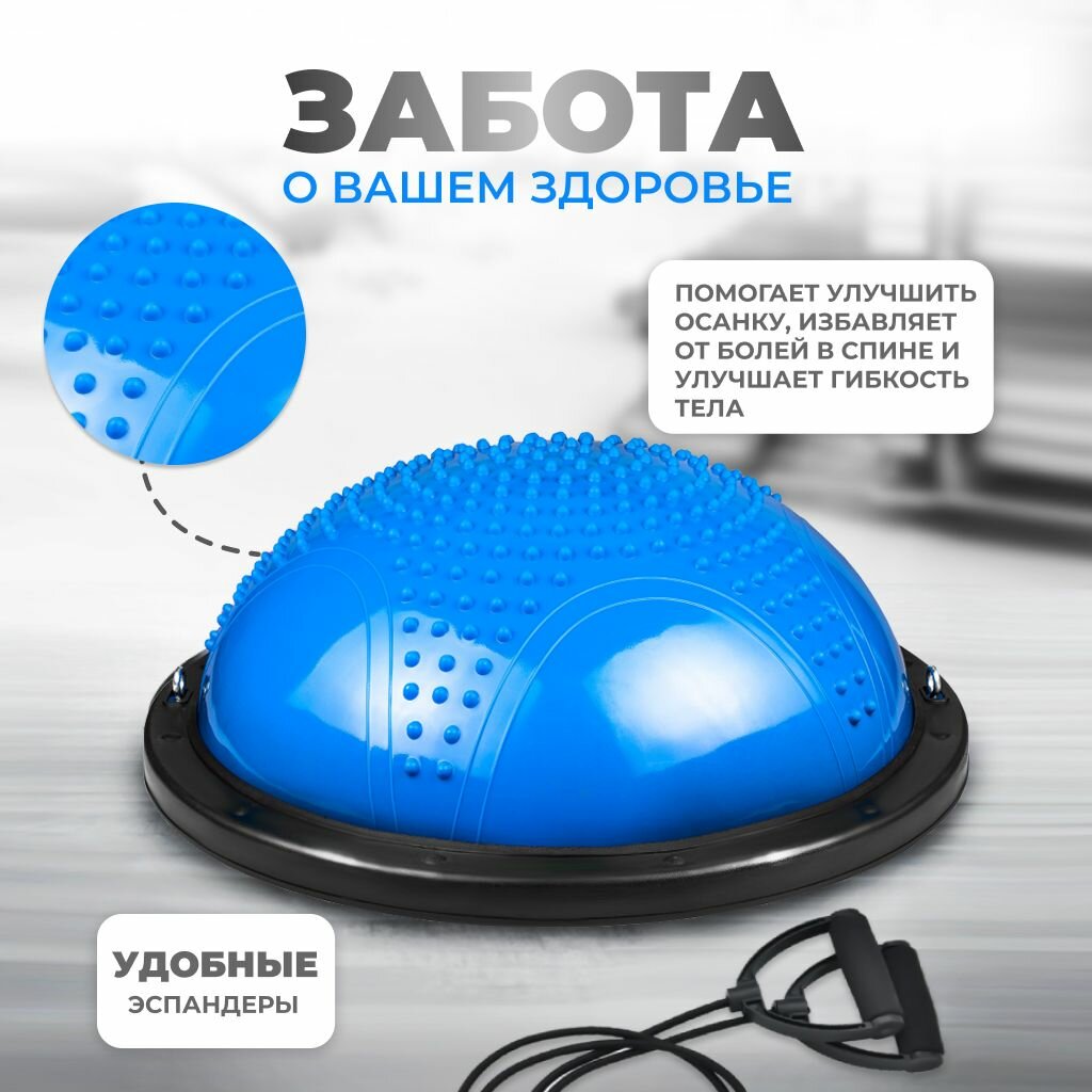 Балансировочная платформа (полусфера) с эспандерами, массажная подушка для занятий 46 см интересное: