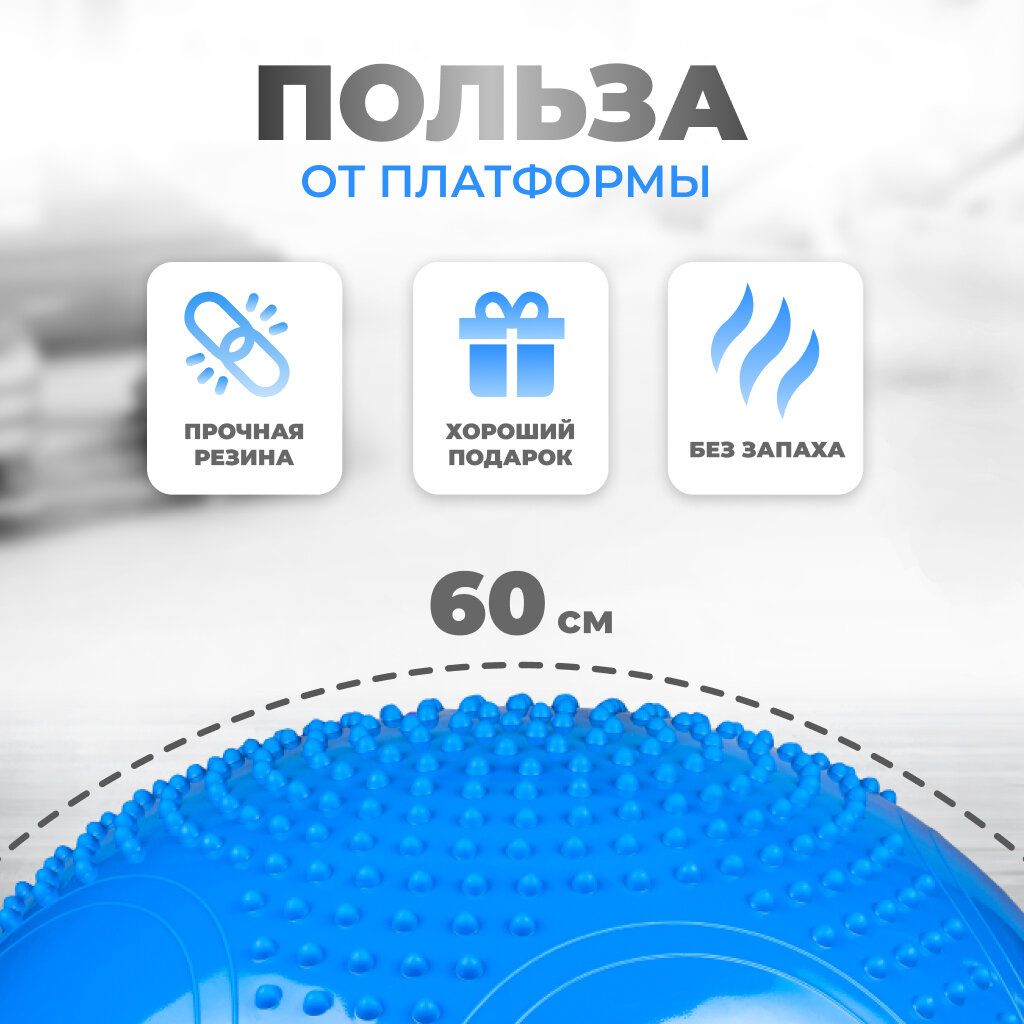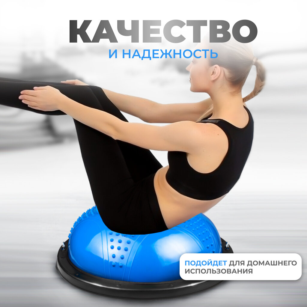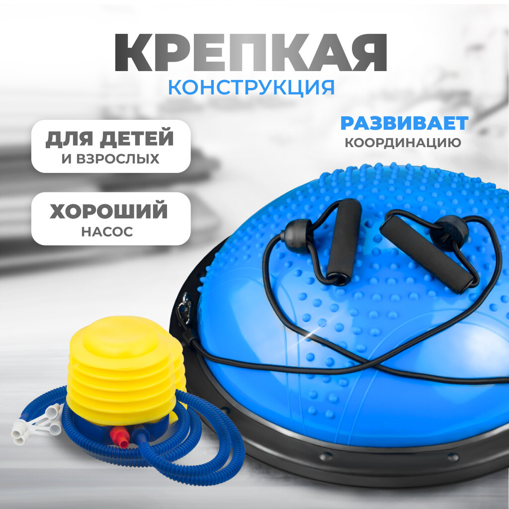 Балансировочная платформа (полусфера) с эспандерами, массажная подушка для занятий, 60 см. интересное: