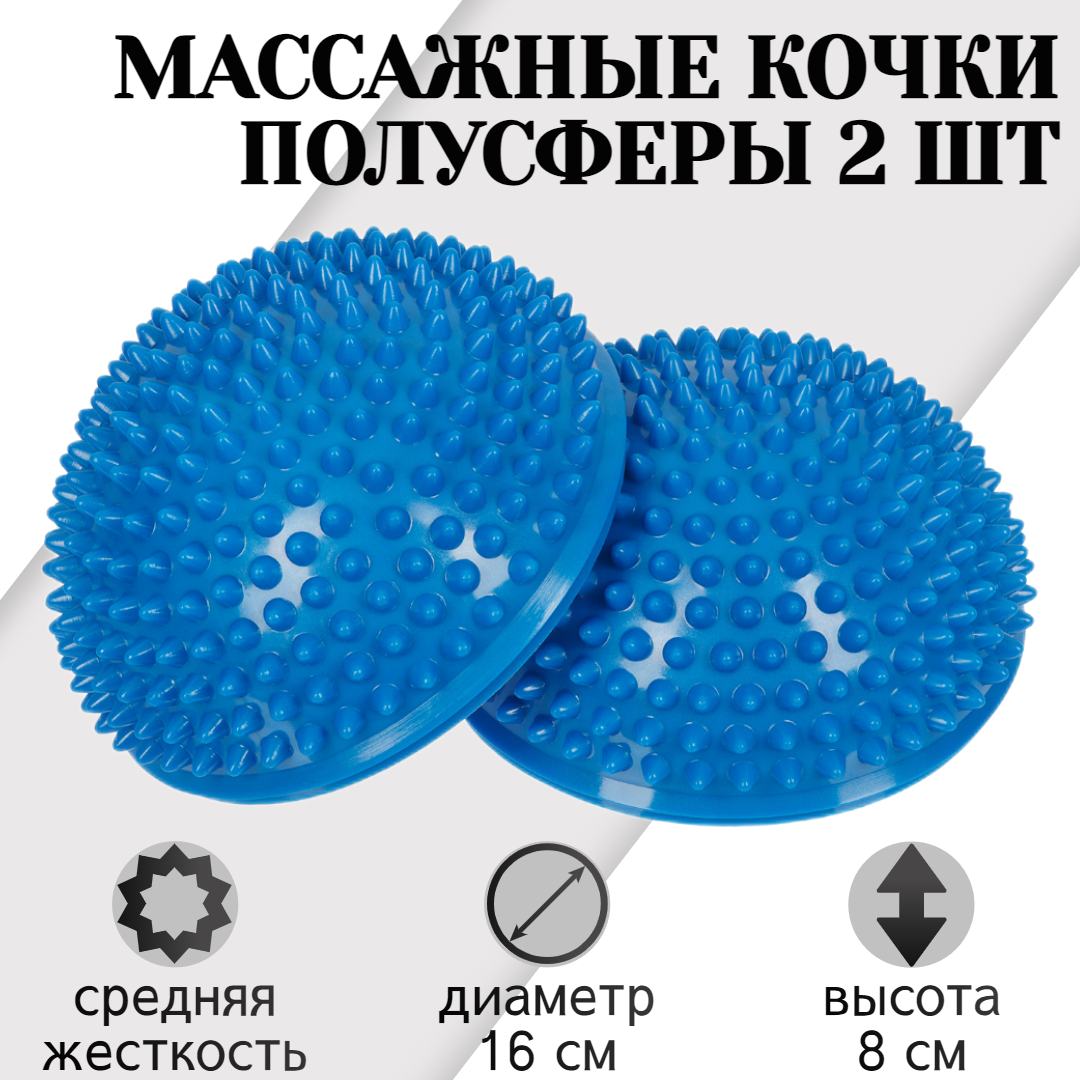 Купить Массажные балансировочные полусферы 2 шт, d 16 см, синие (кочки, подушки, массажер для ног) STRONG BODY