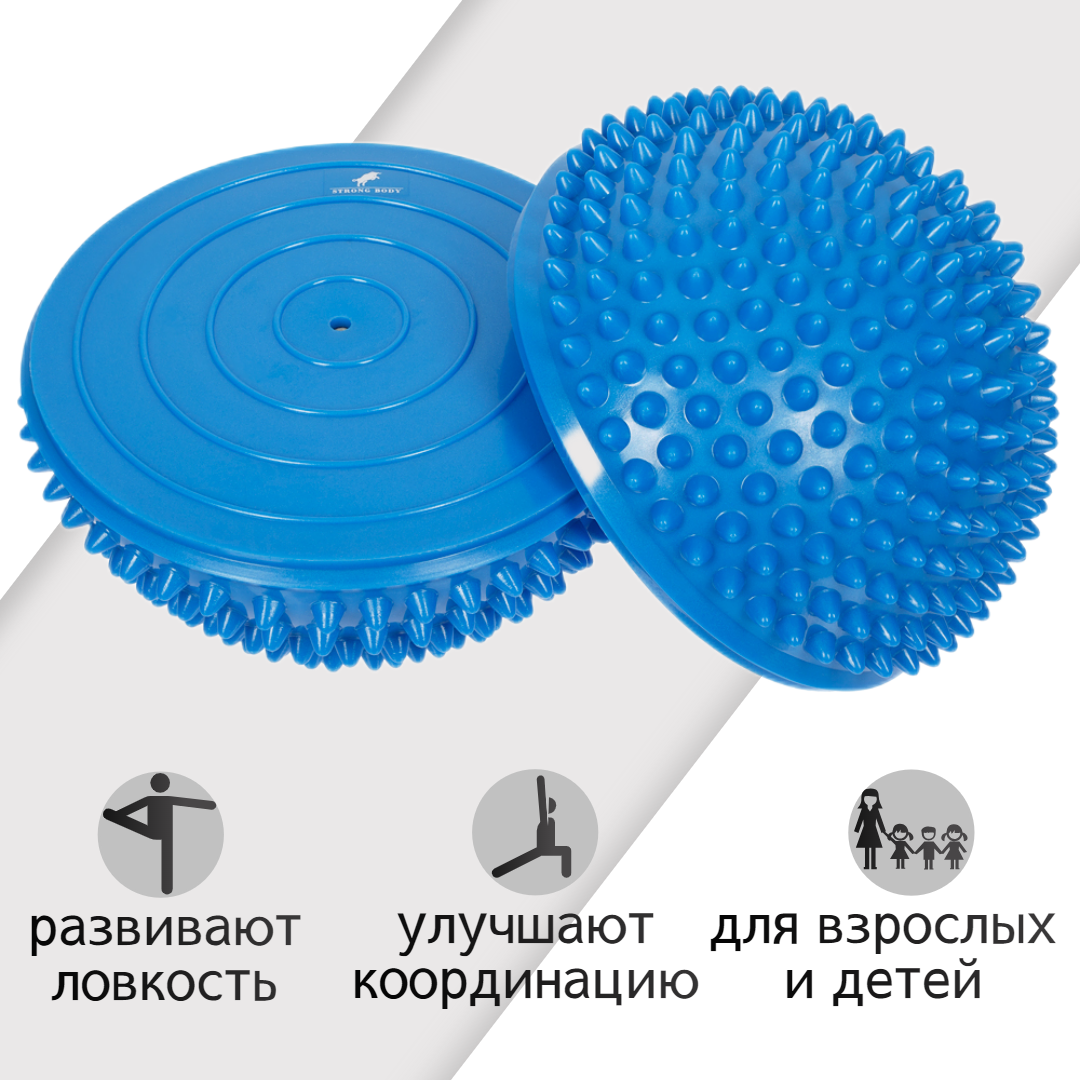 СохранитьМассажные балансировочные полусферы 2 шт, d 16 см, синие (кочки, подушки, массажер для ног) STRONG BODY интересное: