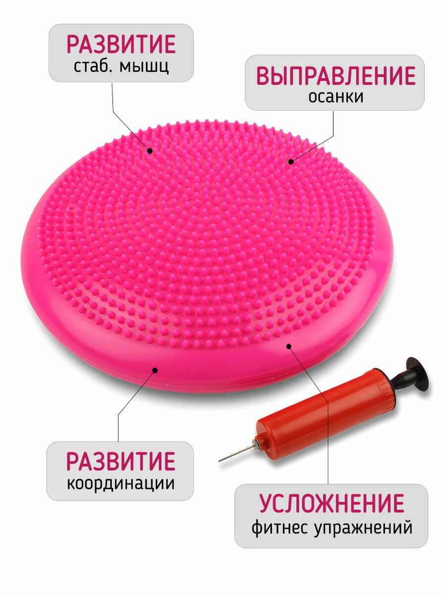 Подушка балансировочная ONLYTOP, массажная, d=35 см, цвет розовый