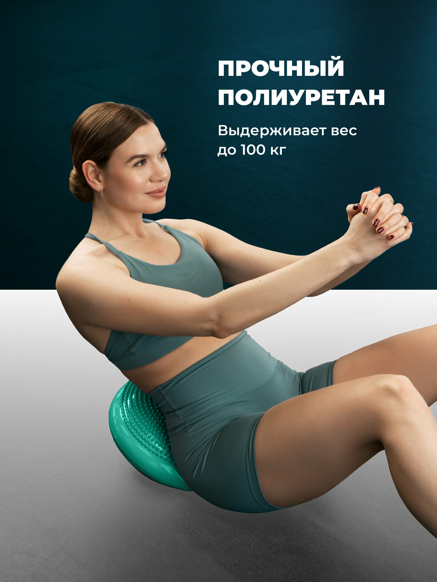 Купить Подушка балансировочная с насосом, Shark Fit, Полусфера для фитнеса / Подушка для йоги и гимнастики/ Бирюзовая, 33 см