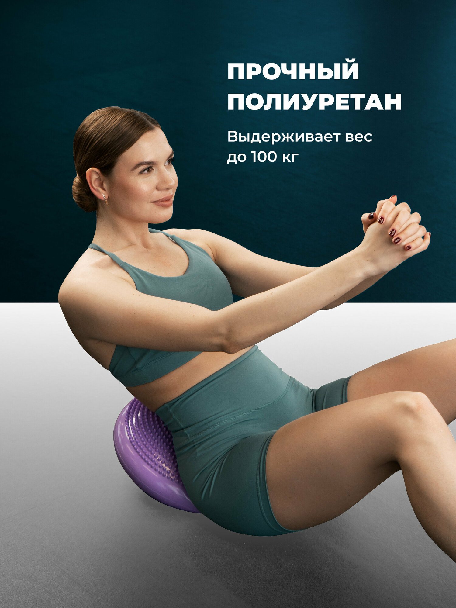 Купить Подушка балансировочная с насосом для йоги и гимнастики, Shark Fit, Полусфера для фитнеса / Фиолетовая, 33 см